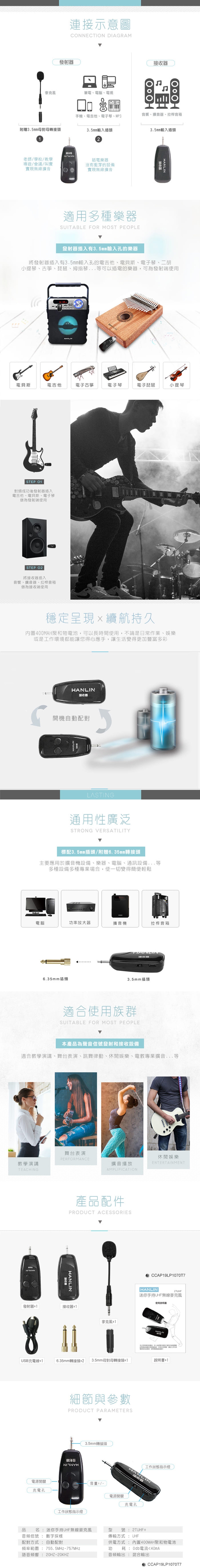 4、將發射器插入無藍芽設備或可以插電的樂器,可用實現無線擴音。