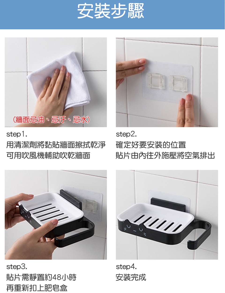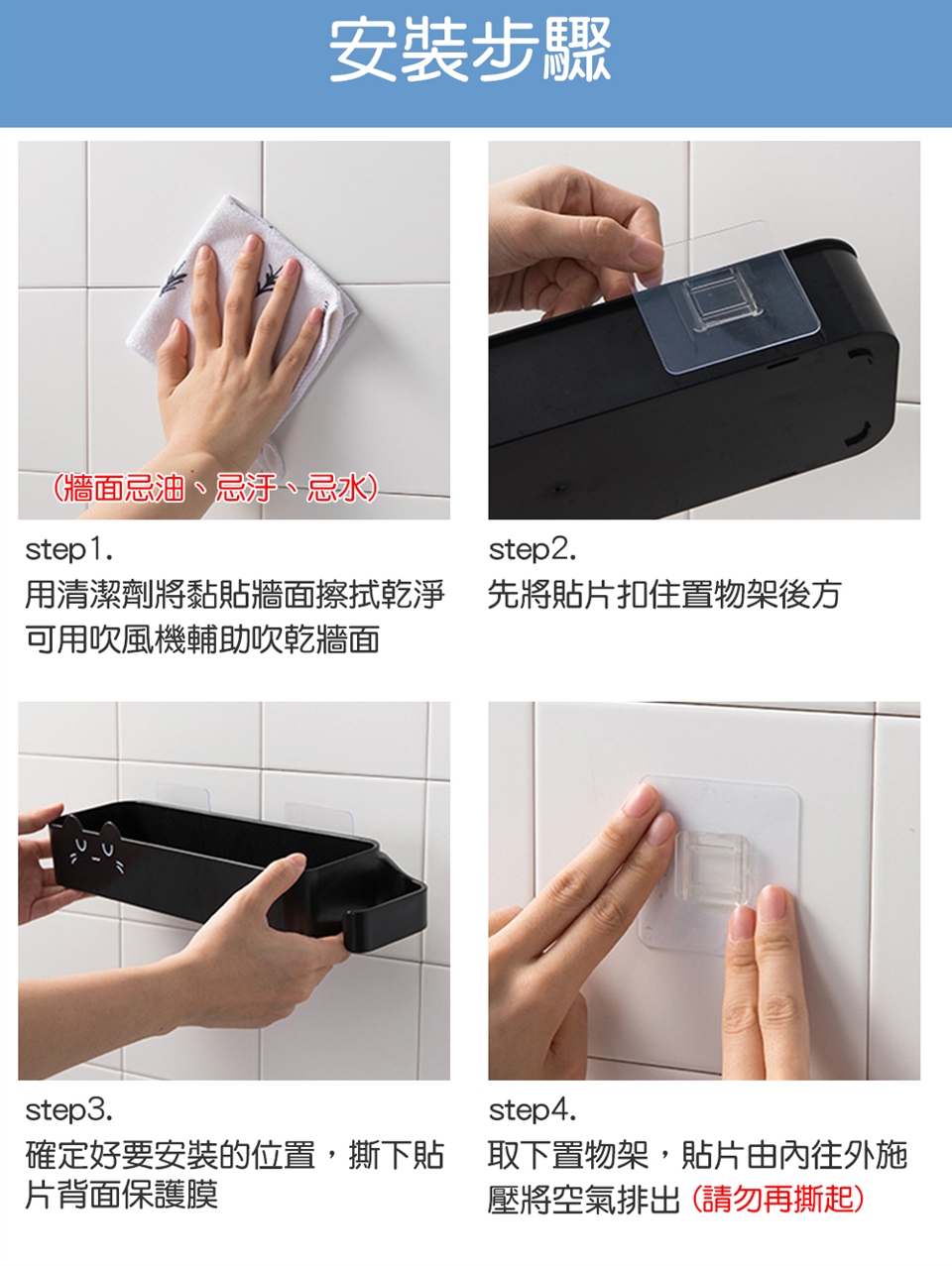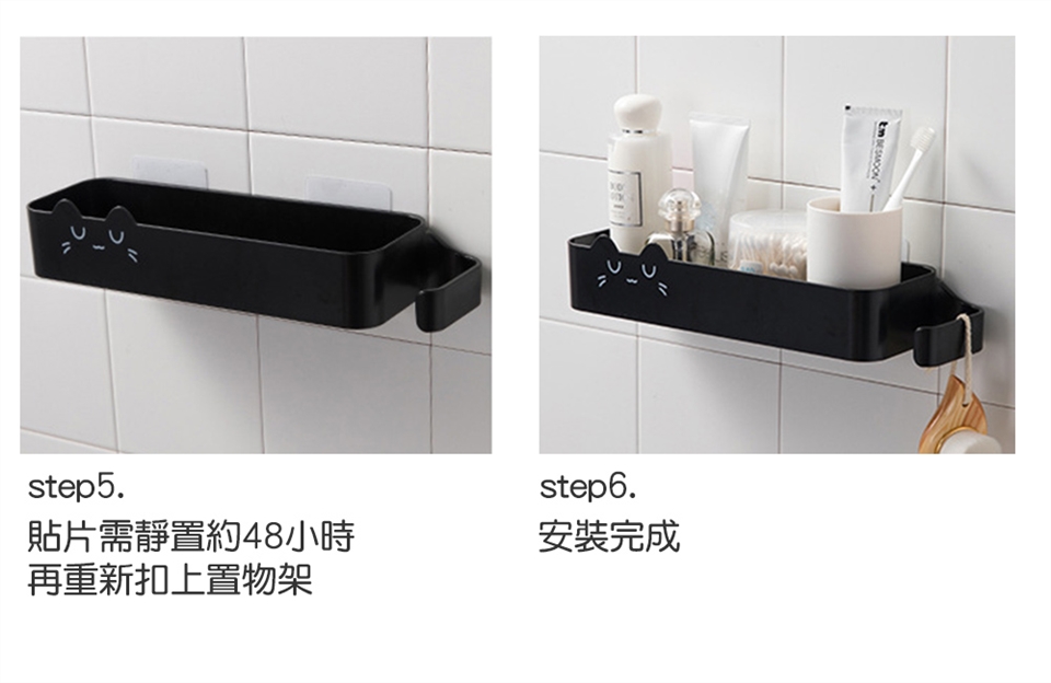 4. 貼片靜置24小時以上與牆壁密合後,即可放上置物架。