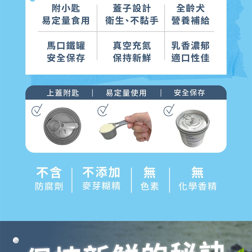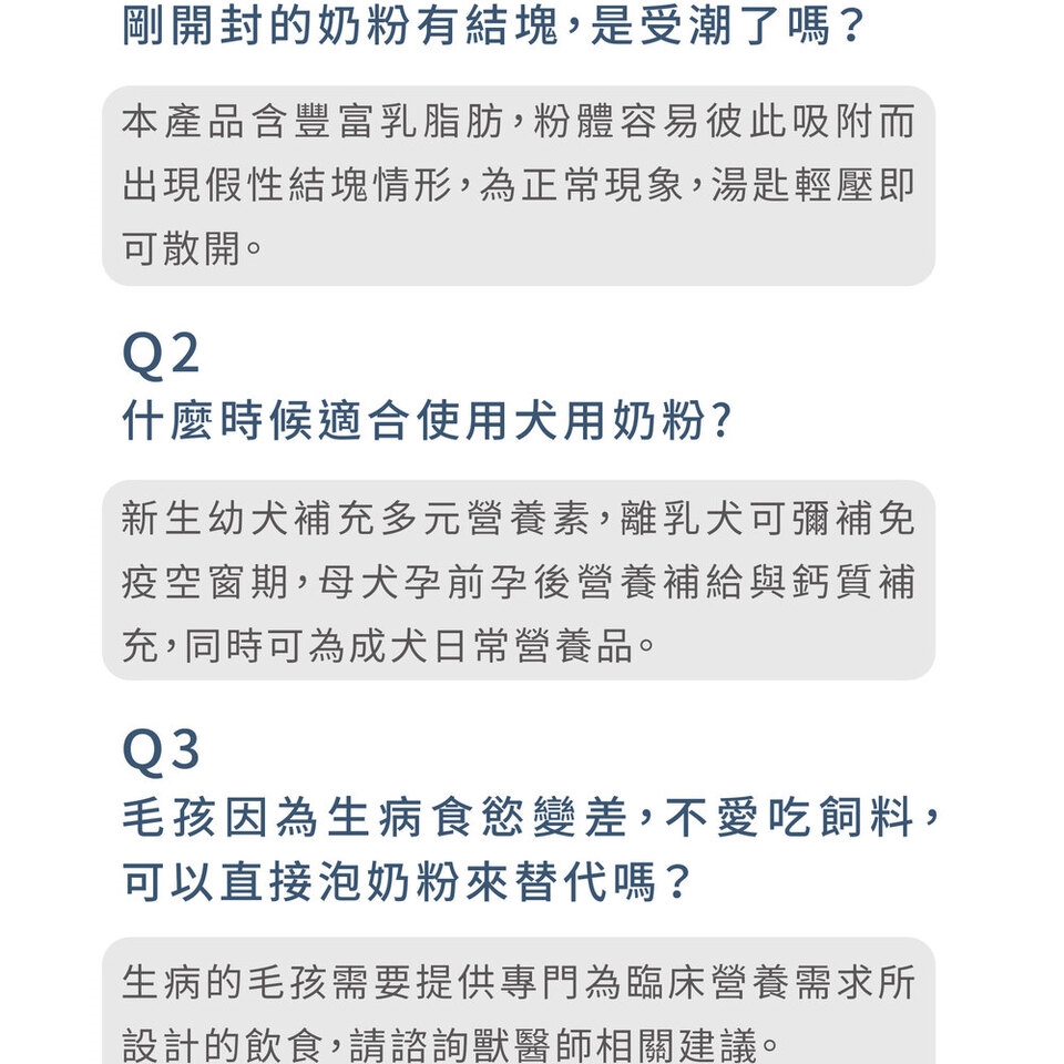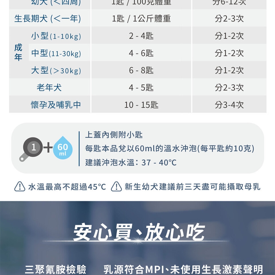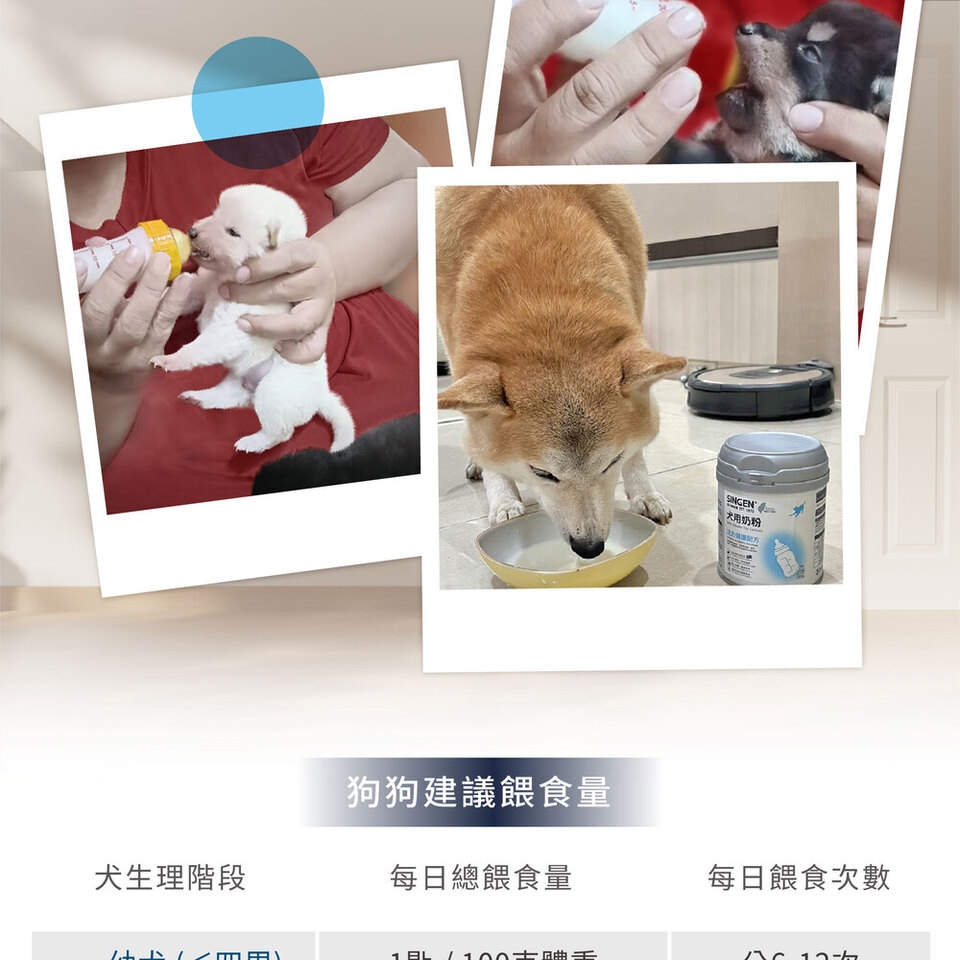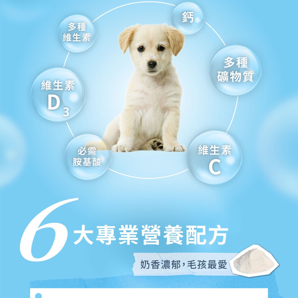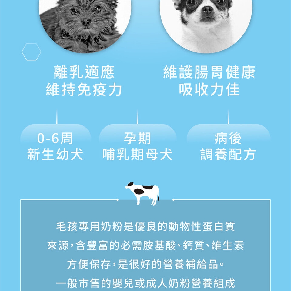 提供犬隻成長發育所需豐富營養,初生幼犬可作為奶水不足時的補充