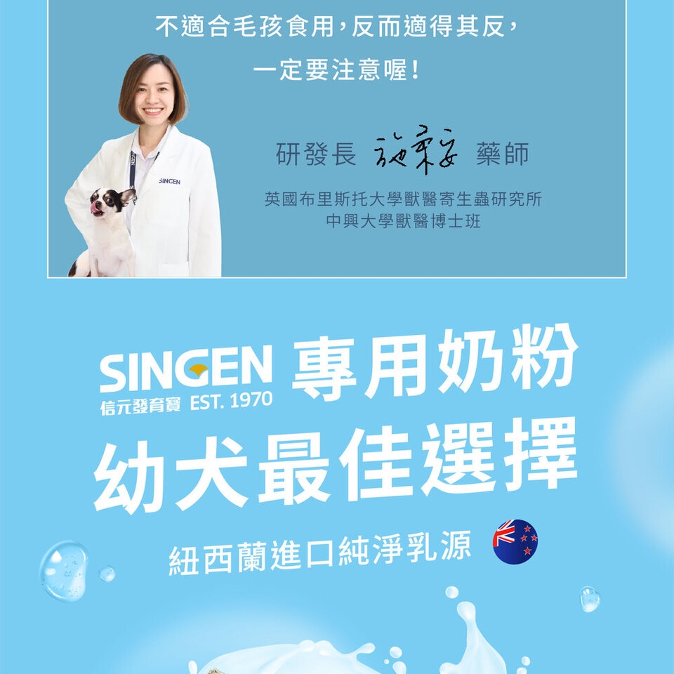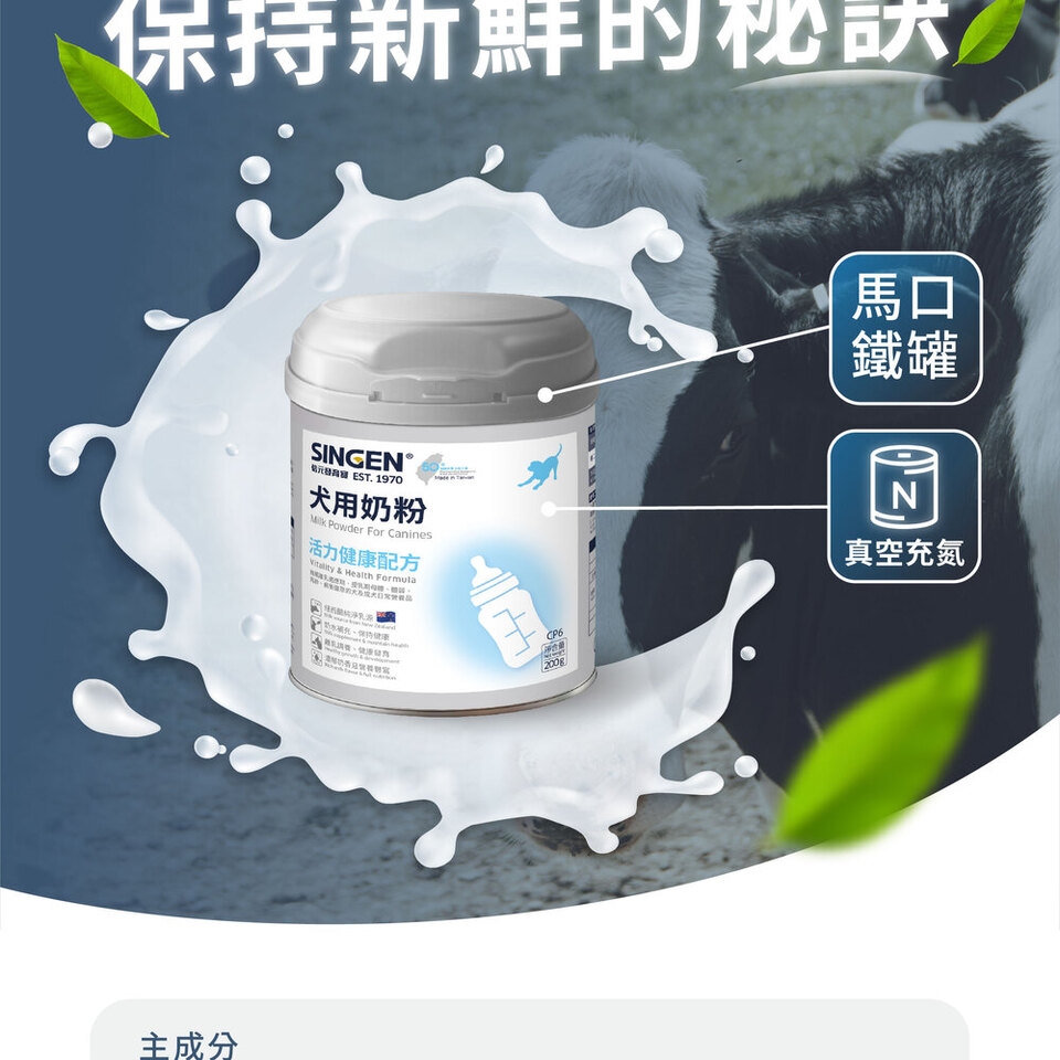 商品名稱:SINGEN 信元發育寶 犬用紐西蘭無汙染進口乳源 全方面補充綜合營養牛奶粉200g/罐 狗狗保健 狗狗保健食品 離乳奶水補充 狗狗B群