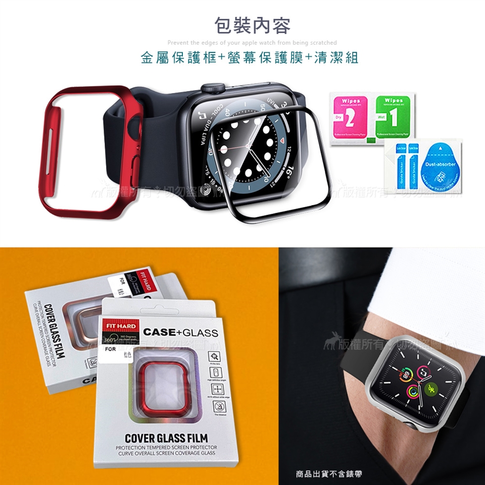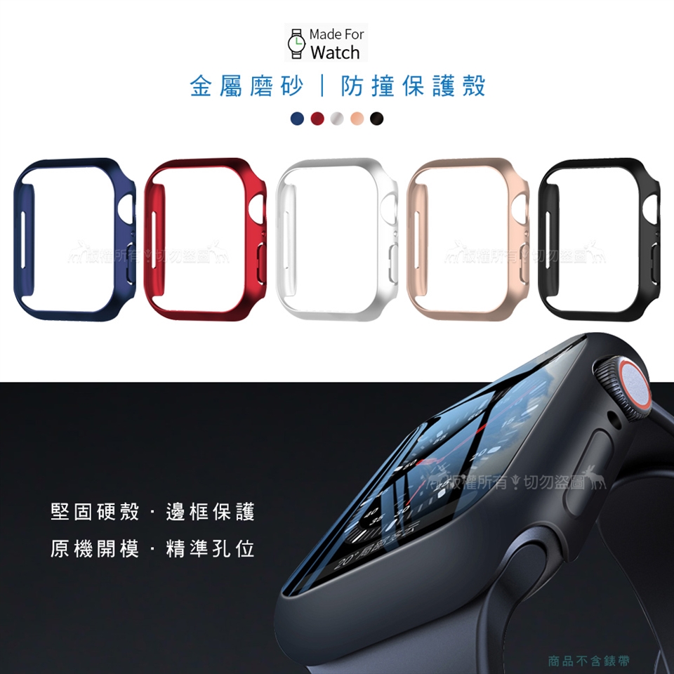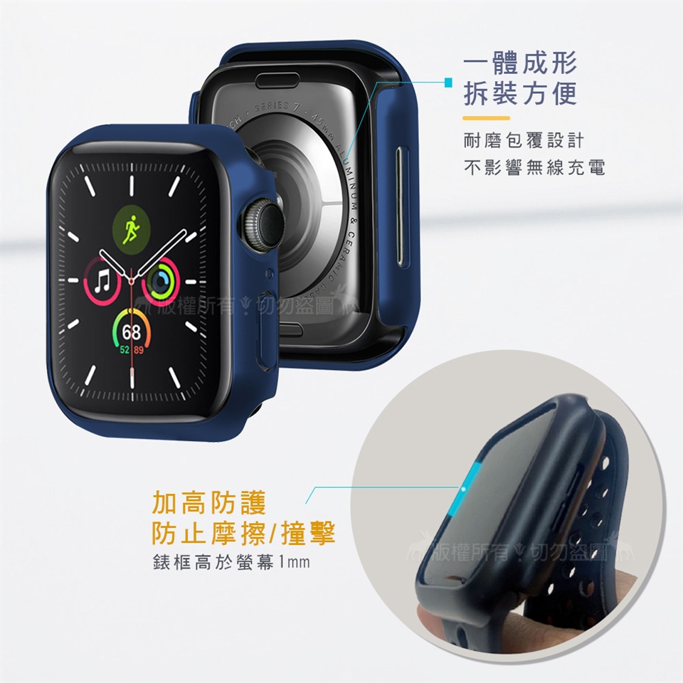 金屬質感磨砂系列 Apple Watch Series 9/8/7 (41mm) 防撞保護殼+3D透亮抗衝擊保護貼(合購價)