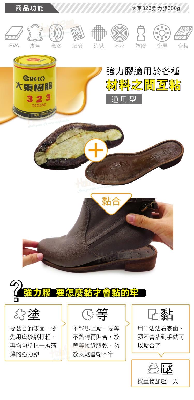 6.將鞋底雙面小心貼合後,用重物加壓一天即完成