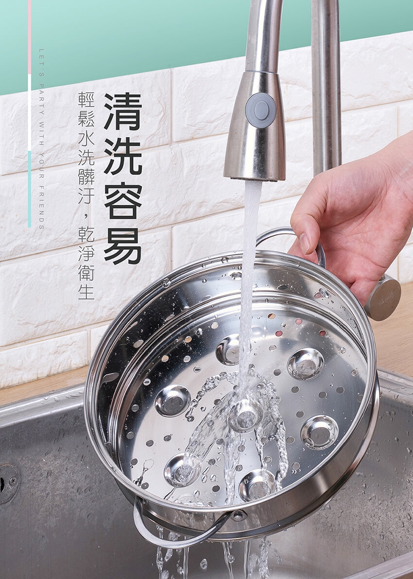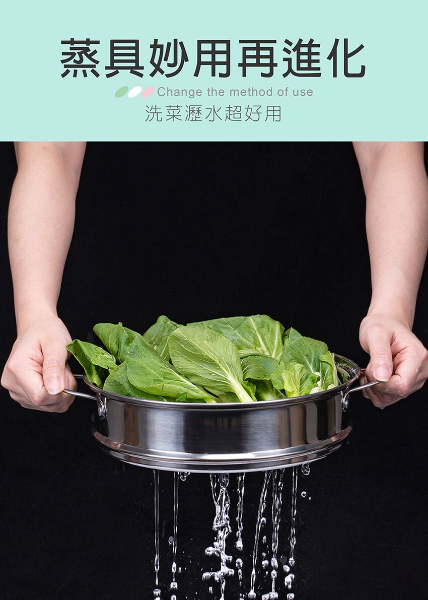 ※ 蒸具組傳熱效果佳,為安全起見,取出蒸架注意餘溫避免燙手。