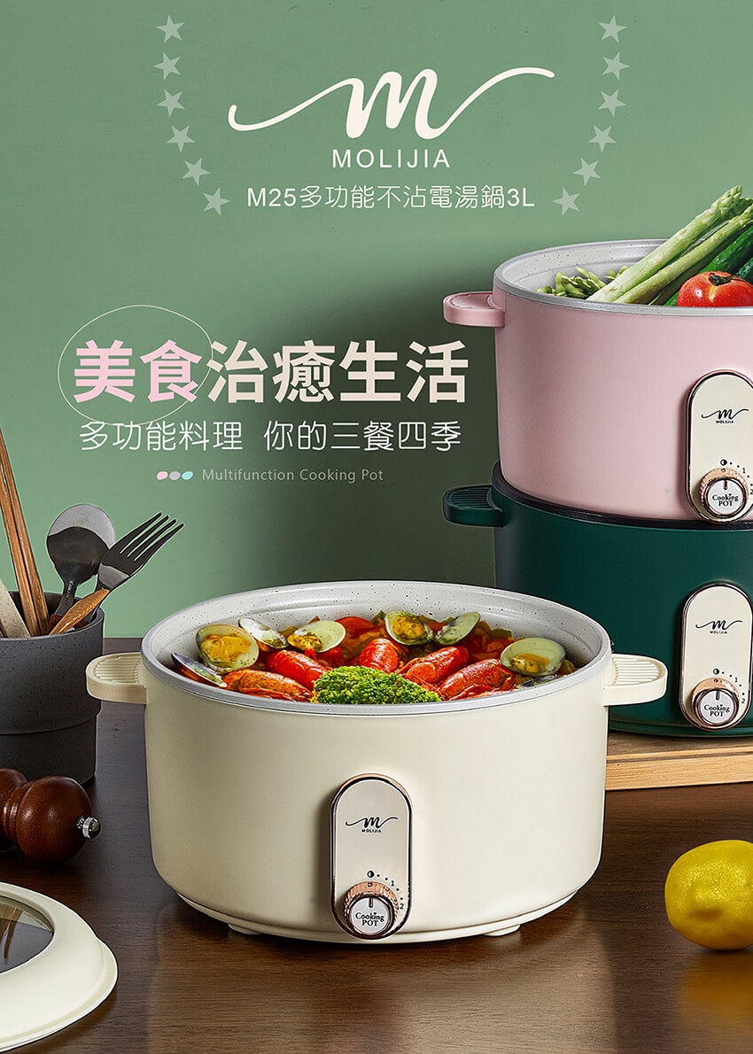 產品名稱:【MOLIJIA 魔力家】M25多功能不沾電湯鍋3L