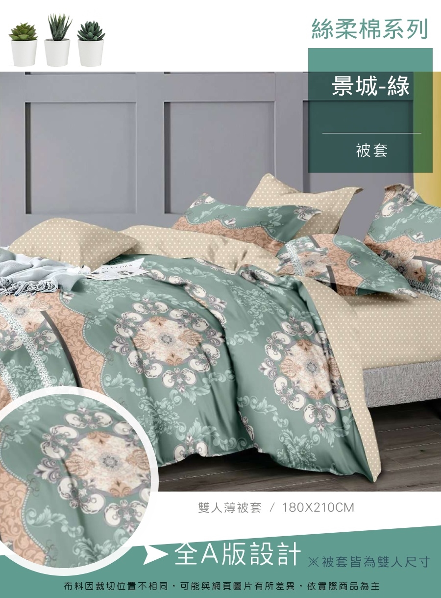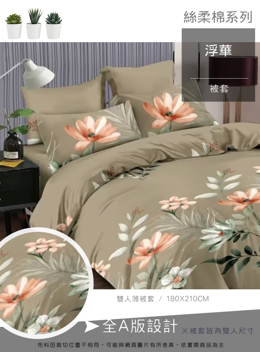 2. 枕套因裁切方式會有不同圖段不一定會與花色展示圖中一致,下單前請考量是否能接受此裁製方式。