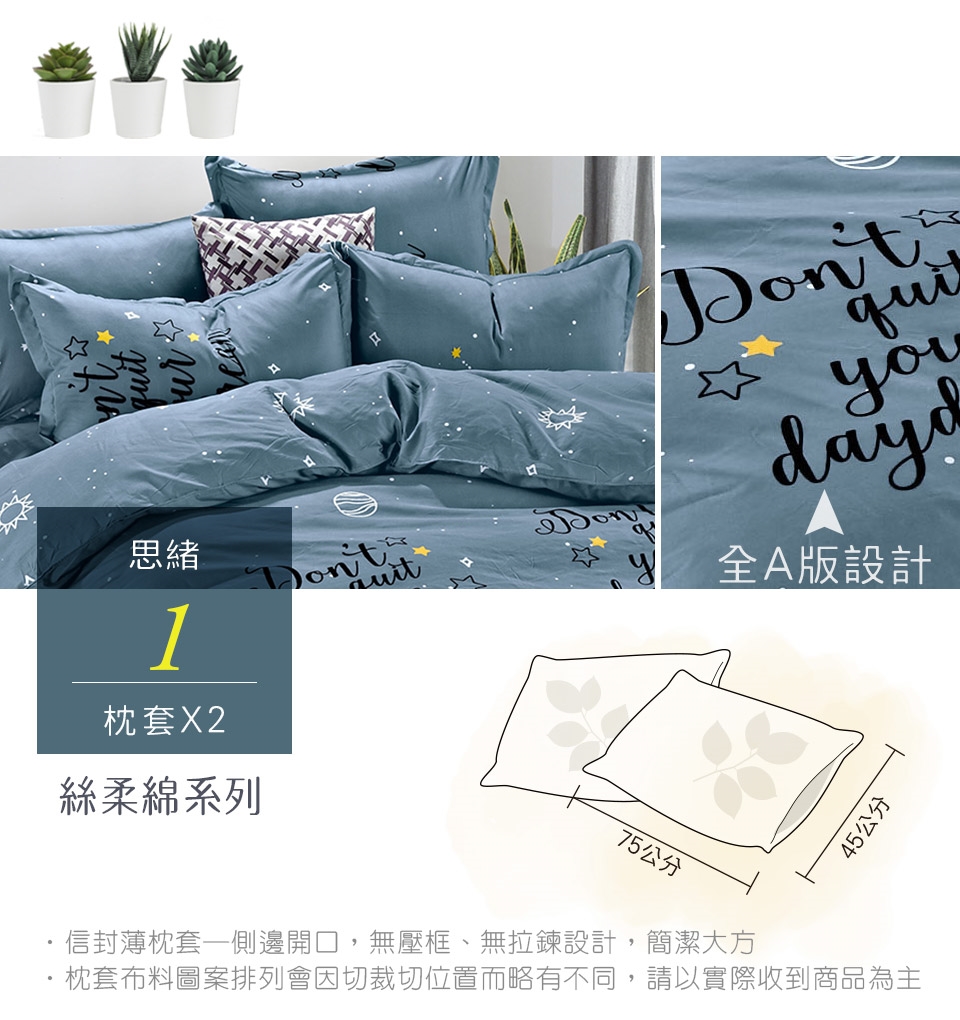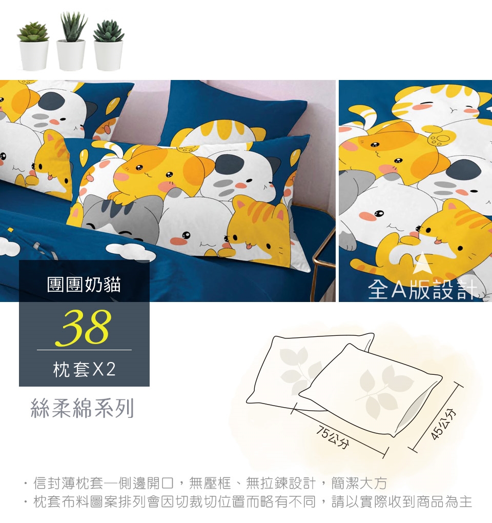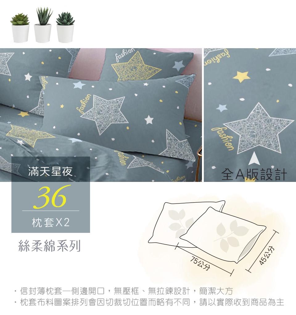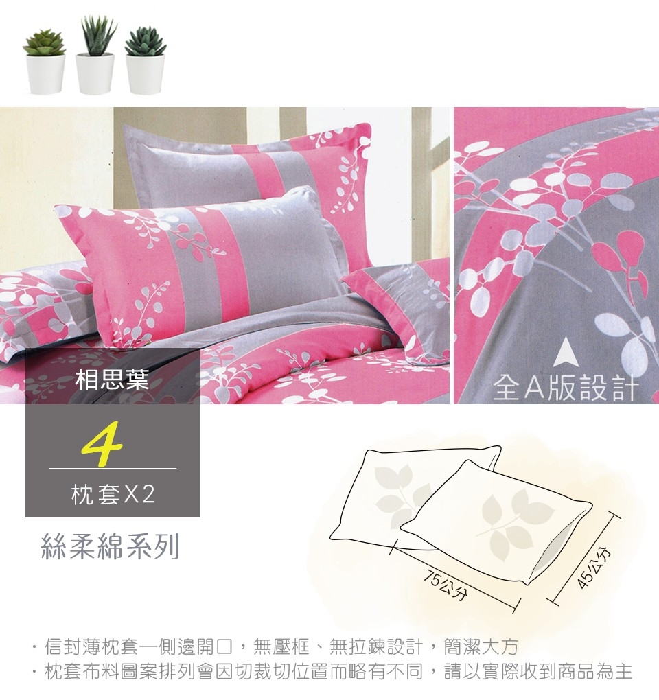 2. 枕套因裁切方式會有不同圖段不一定會與花色展示圖中一致,下單前請考量是否能接受此裁製方式。