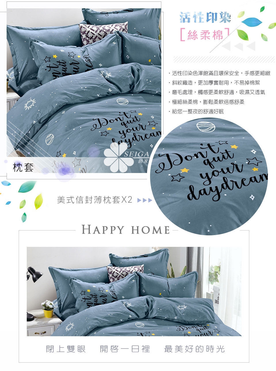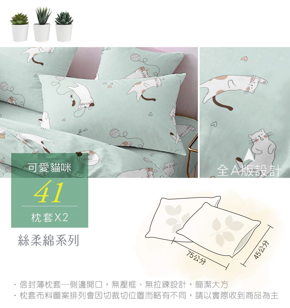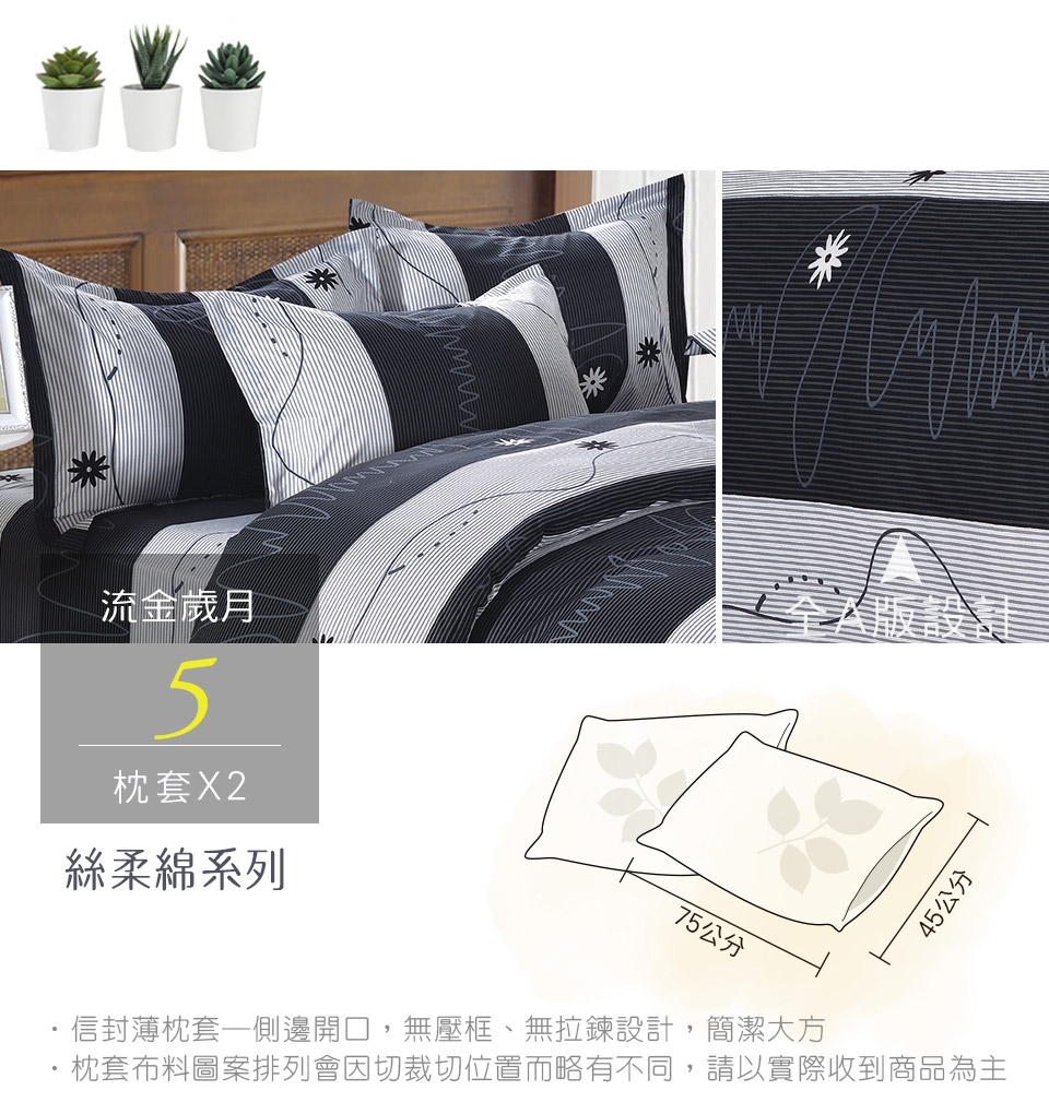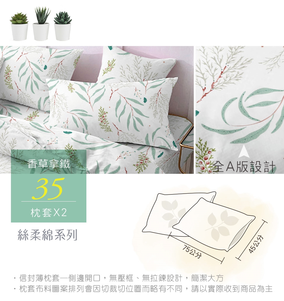 2. 枕套因裁切方式會有不同圖段不一定會與花色展示圖中一致,下單前請考量是否能接受此裁製方式。