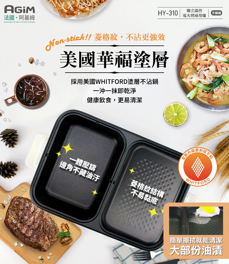 ● 採用美國華福塗層,升級菱形紋路,食物不黏底好清潔
