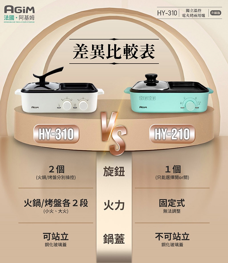 ● 火鍋+烤盤獨立溫控,雙旋鈕分區加熱