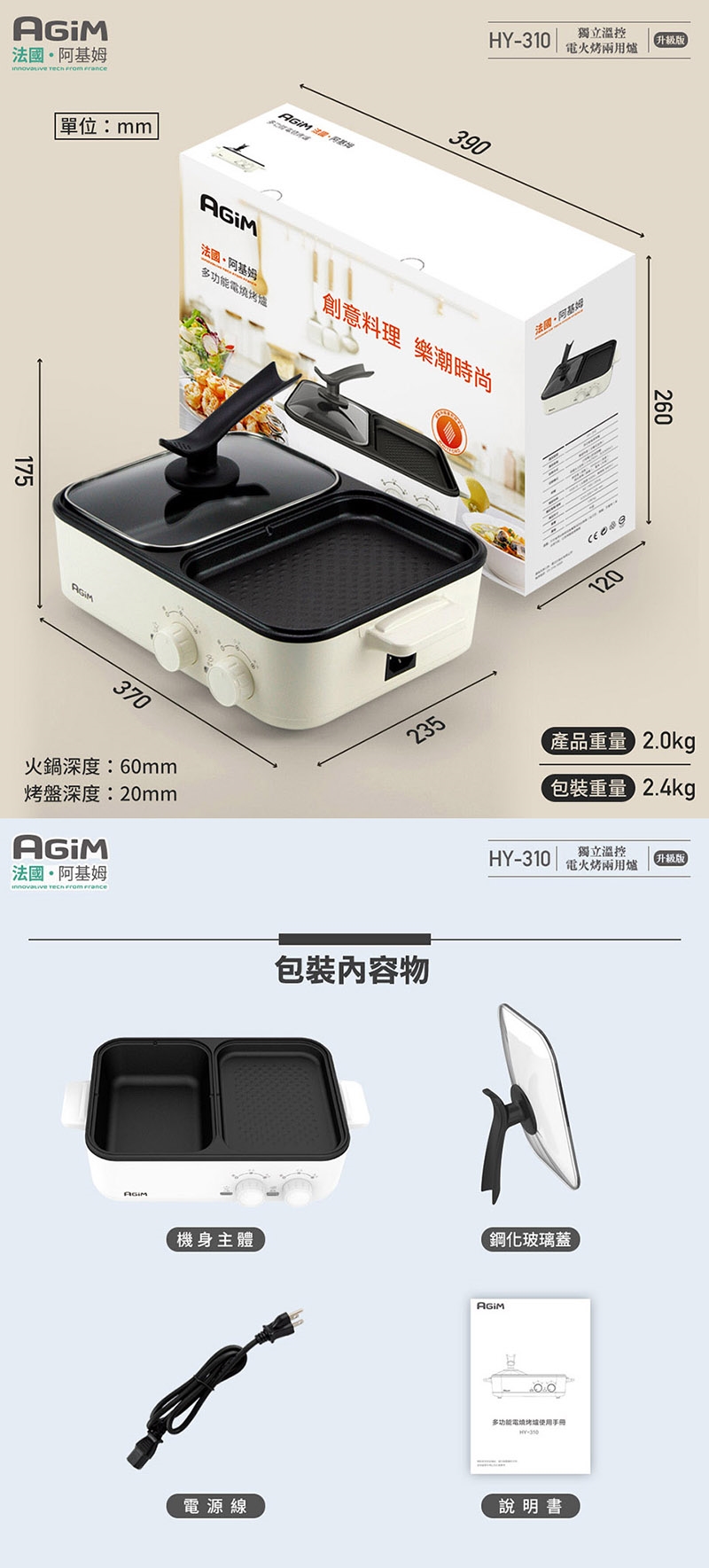 ☆火鍋深度:6cm 烤盤深度:2cm