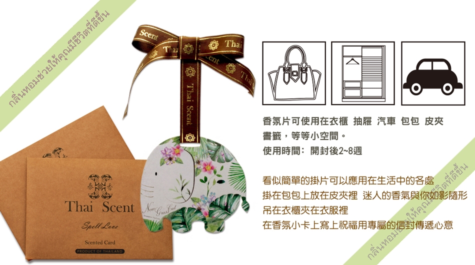 香氛片可使用在衣櫃 抽屜 汽車 包包 皮夾 書籤,等等小空間。