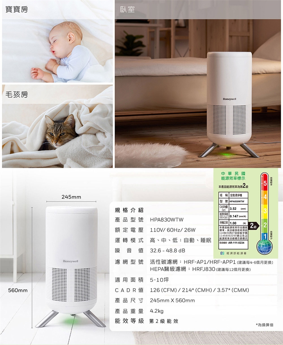 HEPA濾網 HRFJ830(建議12個月更換一次)