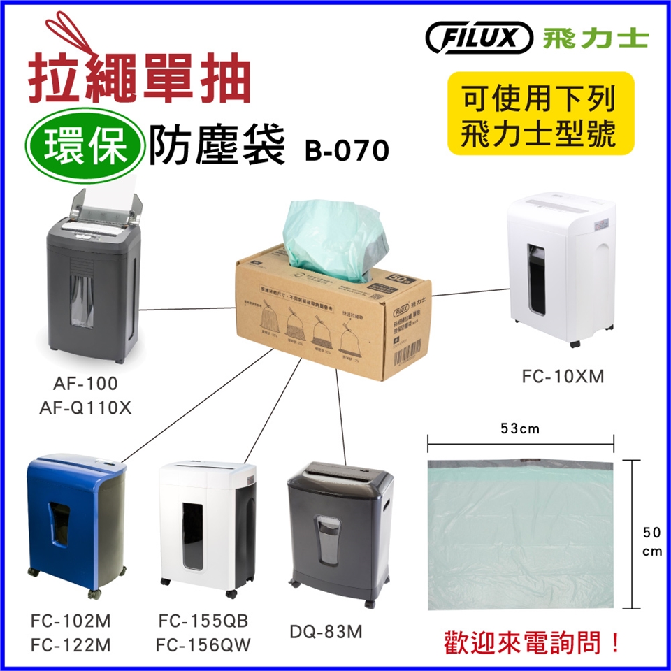 FILUX 飛力士 碎紙機集紙防塵袋 B-070 <尺寸:53x50cm>