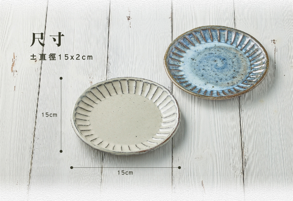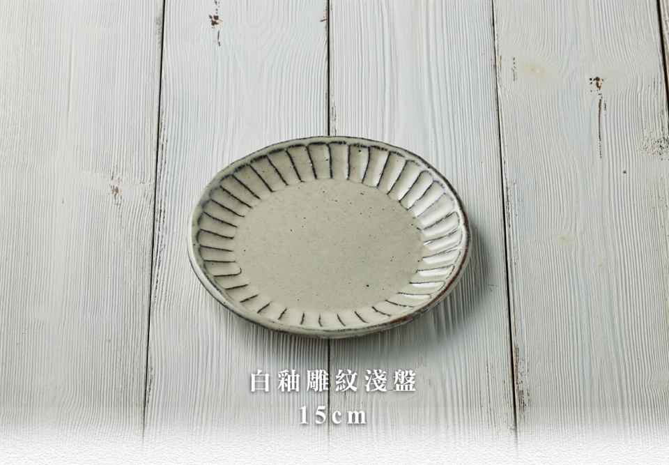 質地,盤緣重複排列的直刻條紋,釉色恬
