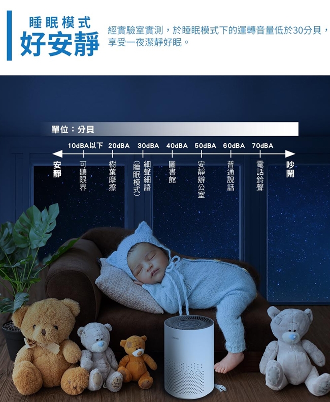 ◎睡眠模式(低噪音~21dB+LED亮度減半)