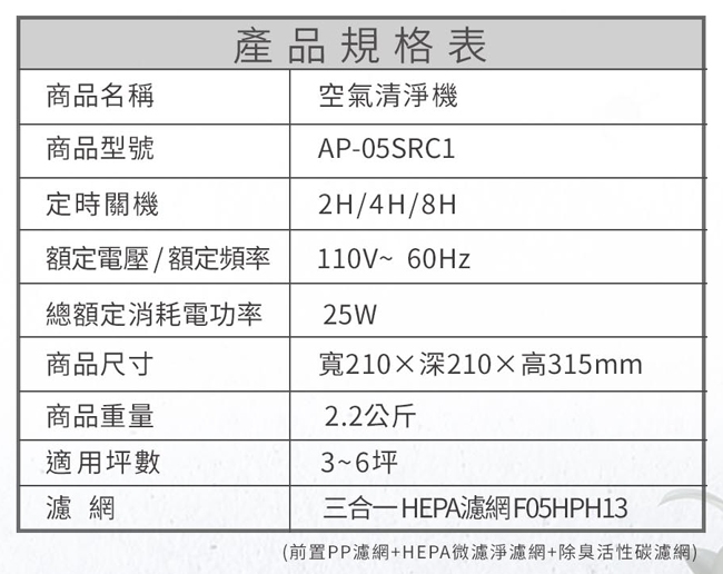 ◎前置PP濾網+H13醫療級HEPA濾網 + 活性碳濾網(三合一濾網)