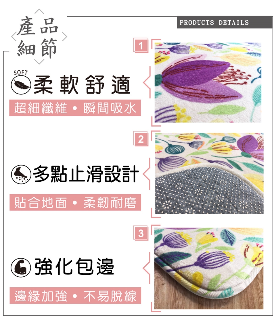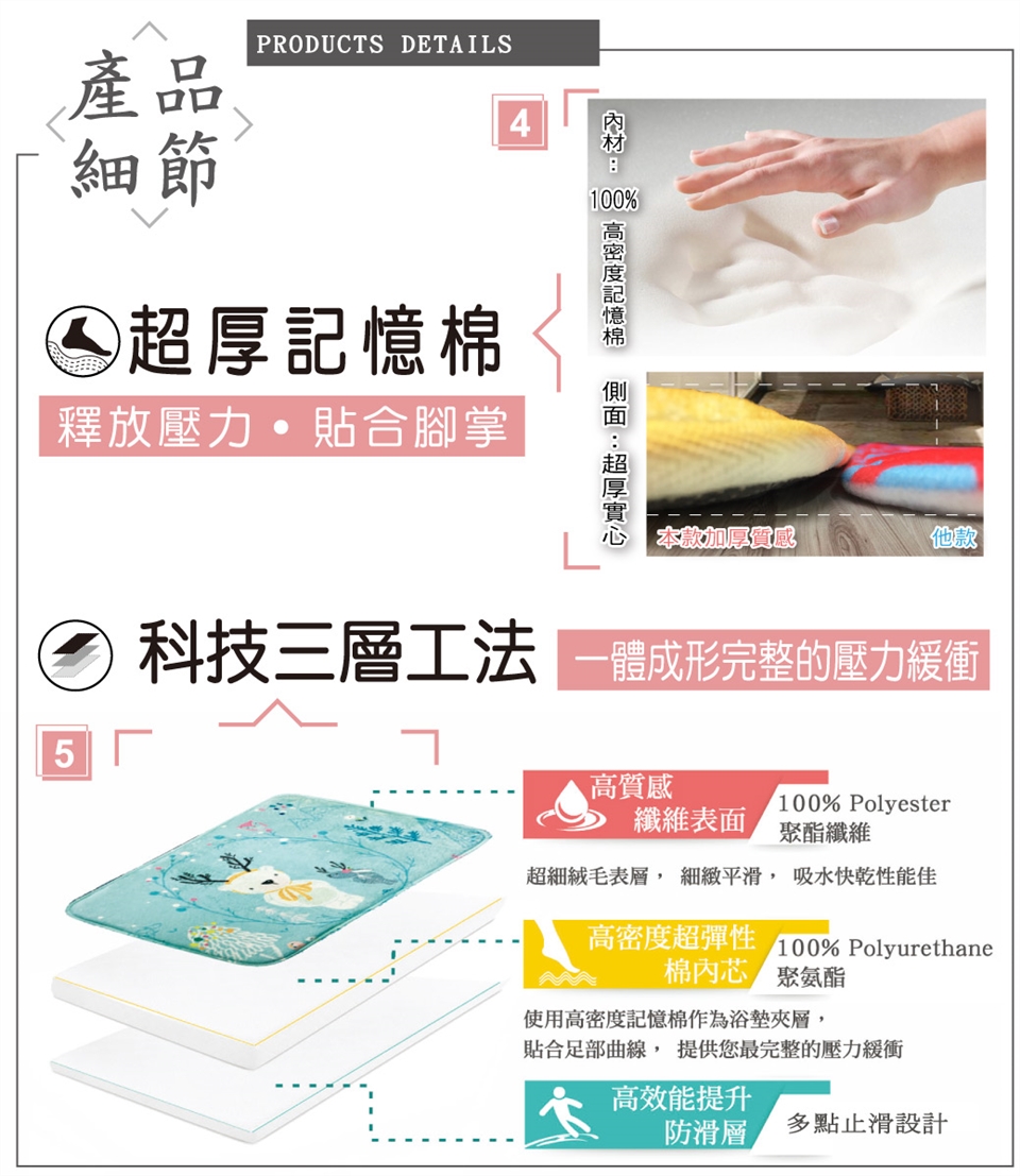 .材質─100%聚酯纖維/內材-聚氨酯記憶棉/底部─100%PVC止滑加工