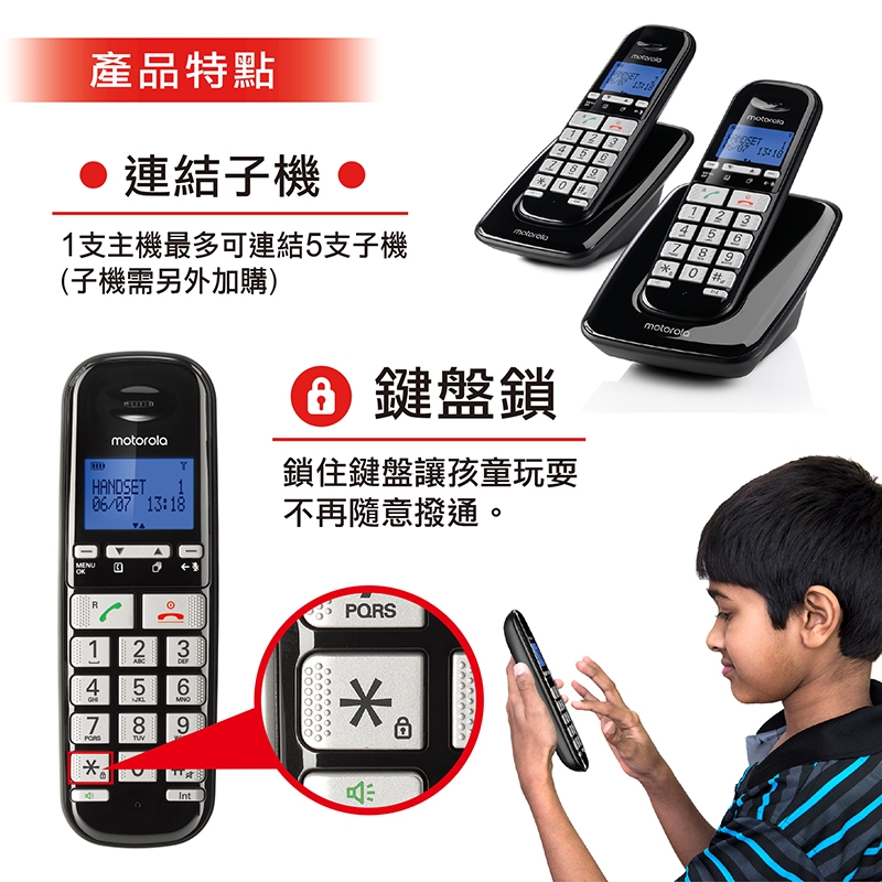 Motorola 大字鍵DECT無線單機 S3001 黑