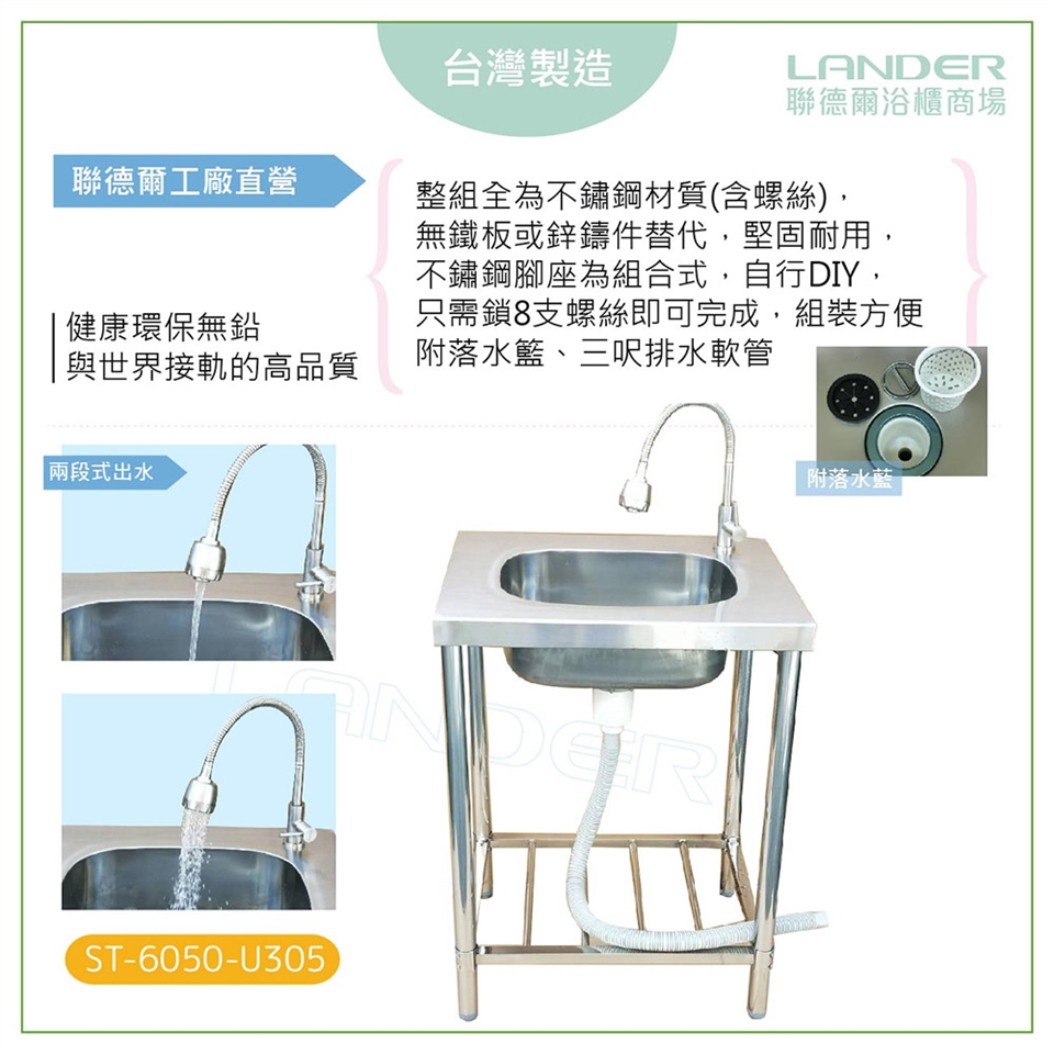 整組全為不鏽鋼材質(含螺絲),無鐵板或鋅鑄件替代,堅固耐用