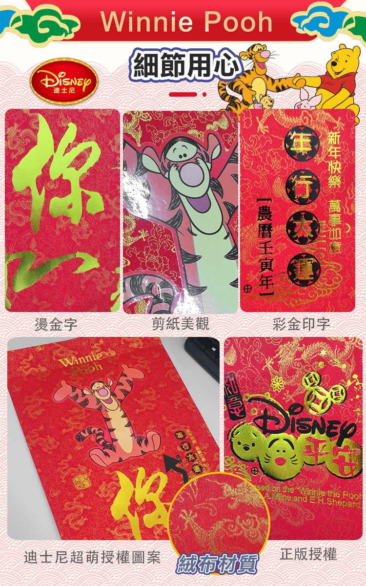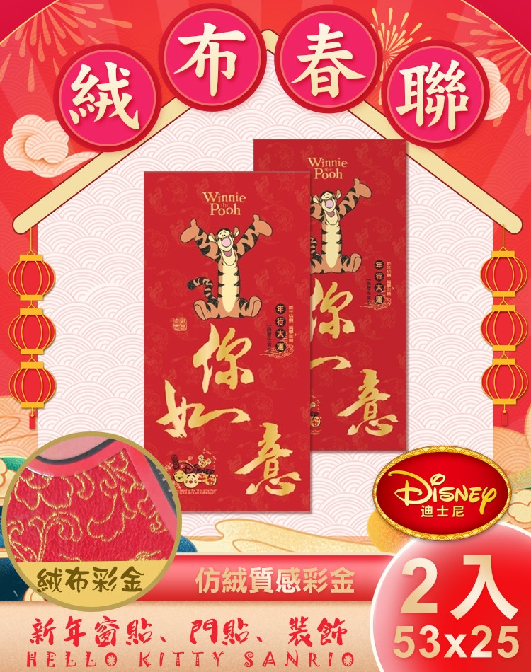 【DISNEY】迪士尼跳跳虎絨布彩金春聯2入組-虎你如意(NYT0207)
