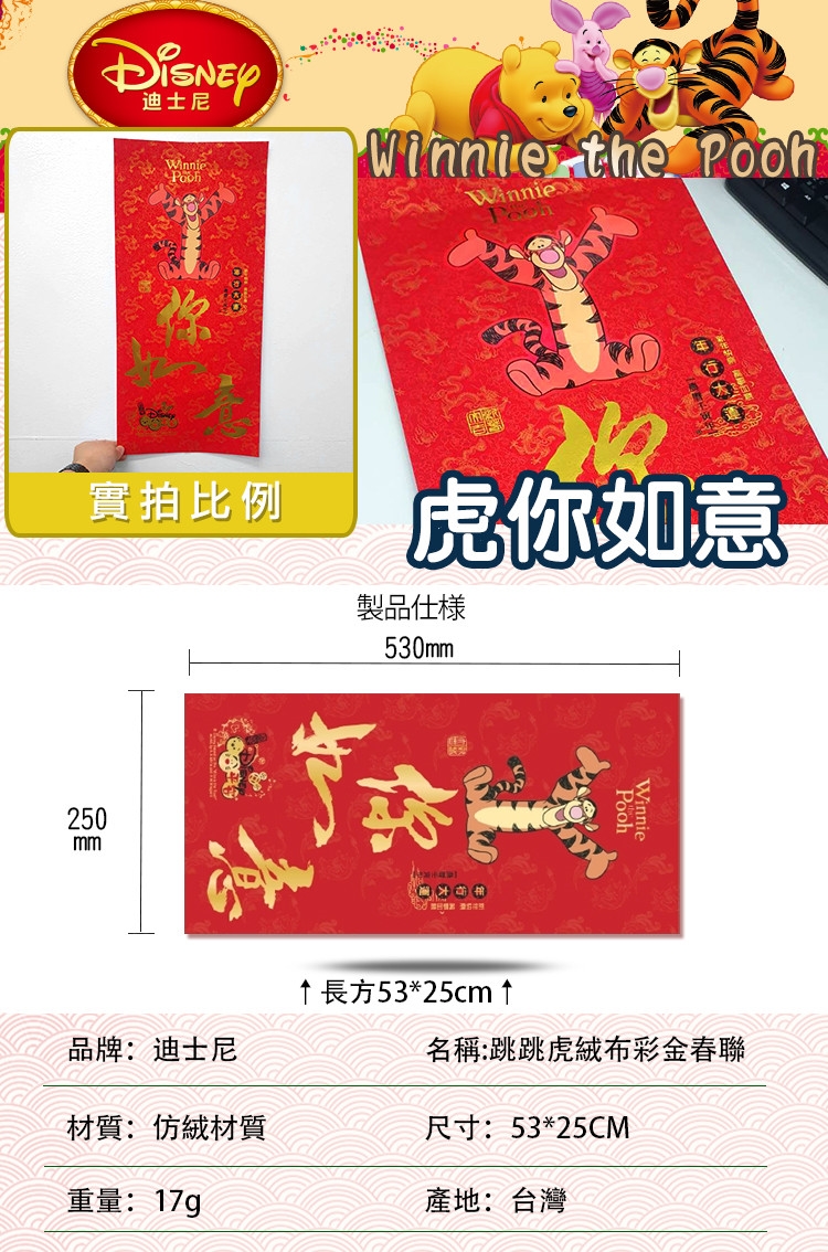 產品名稱:迪士尼跳跳虎絨布彩金春聯2入組-虎你如意