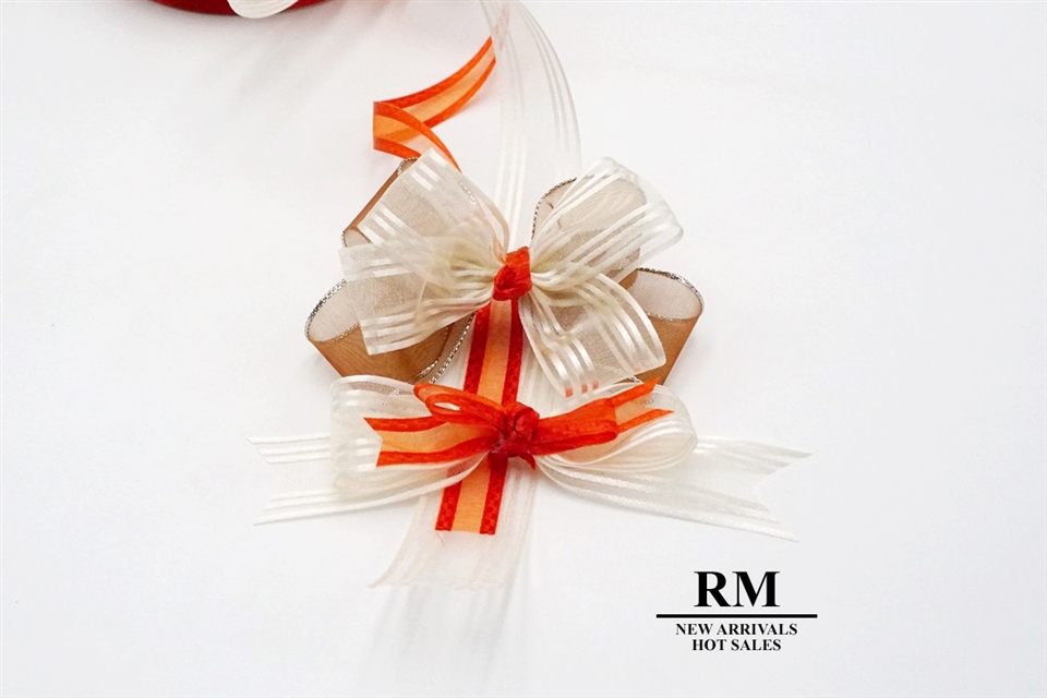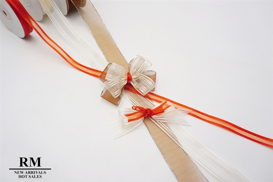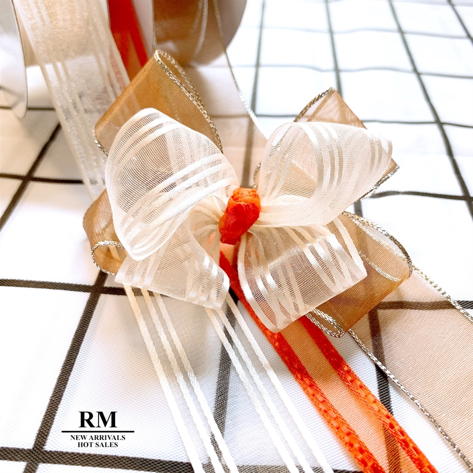 咖、米、橘系列緞帶組合而成。