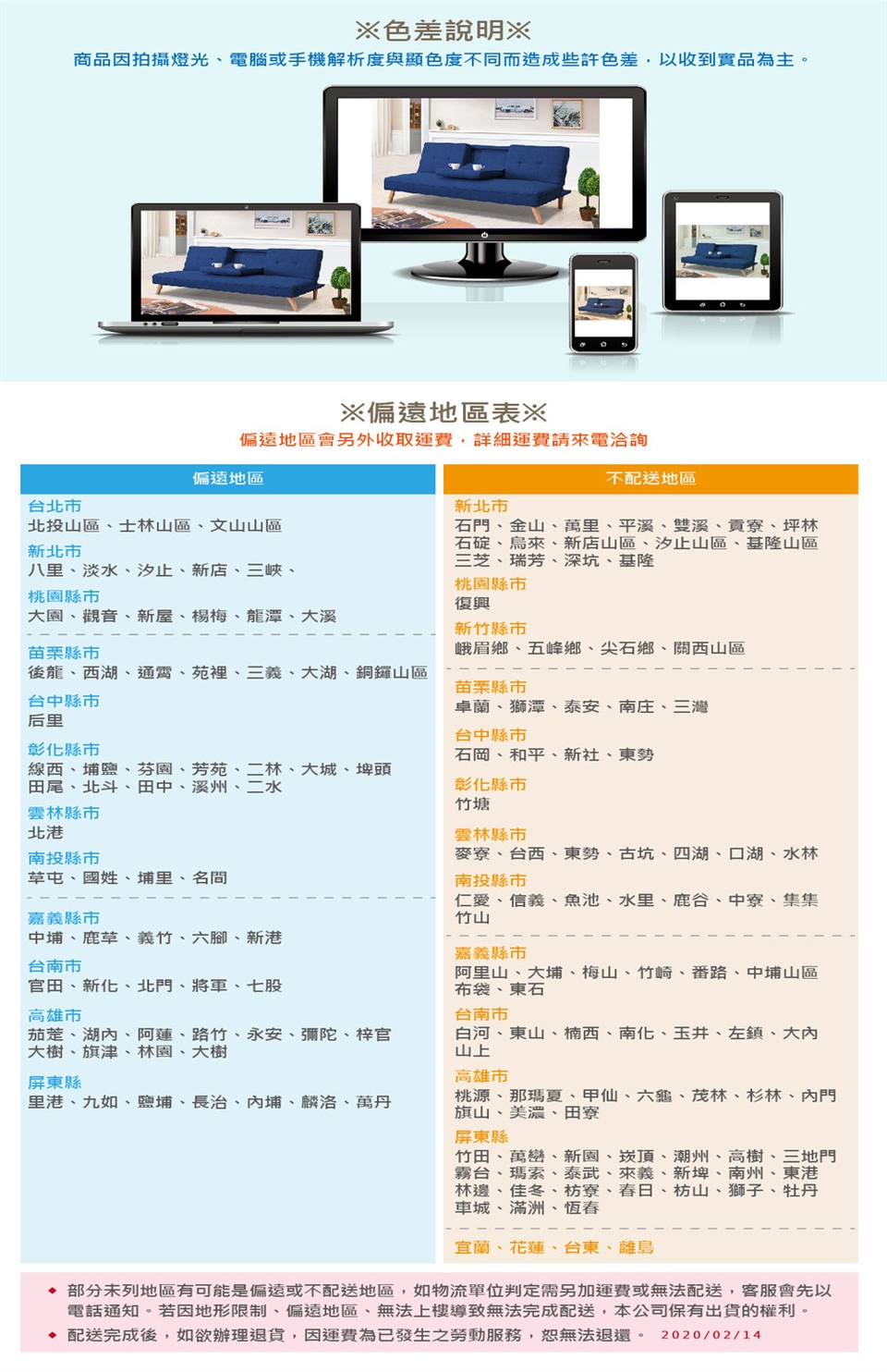 下單前請先丈量電梯或樓梯/家裡門寬/必經路程寬度及高度,確保沙發可上,訂製商品如因個人因素不可退換貨,我司亦不負擔吊車費用,謝謝。