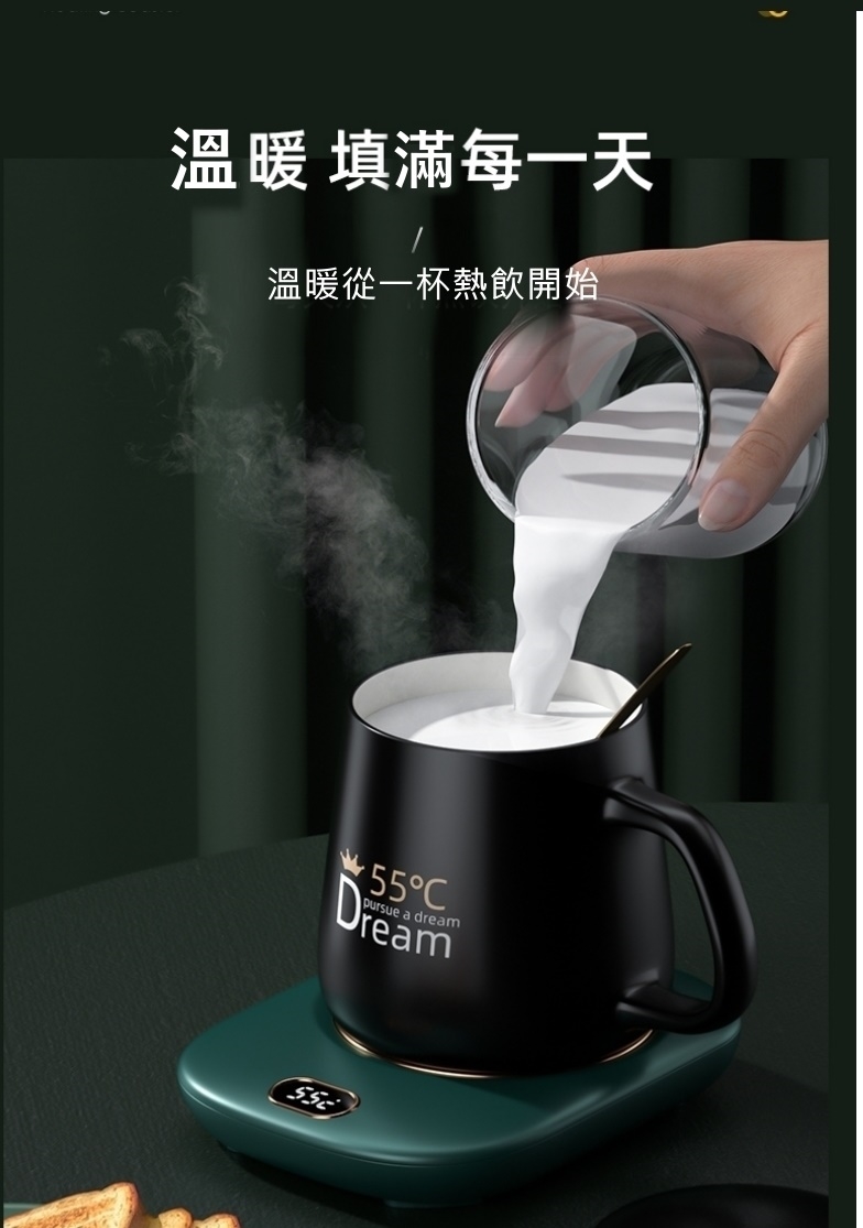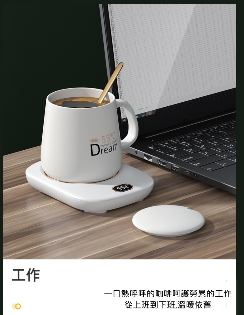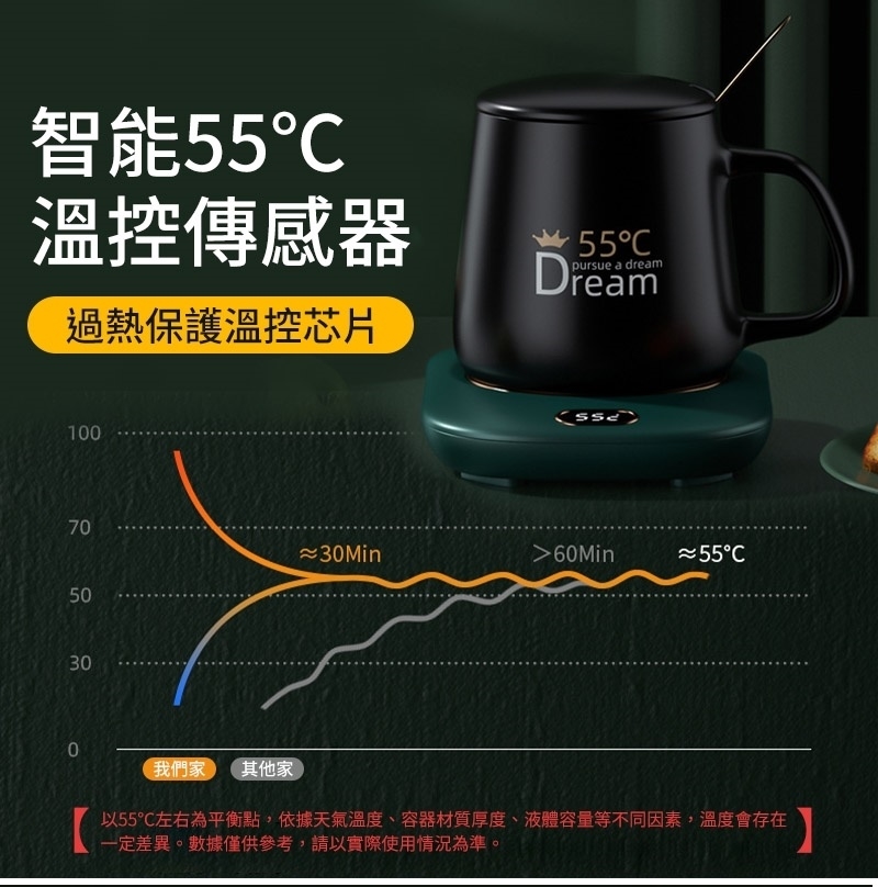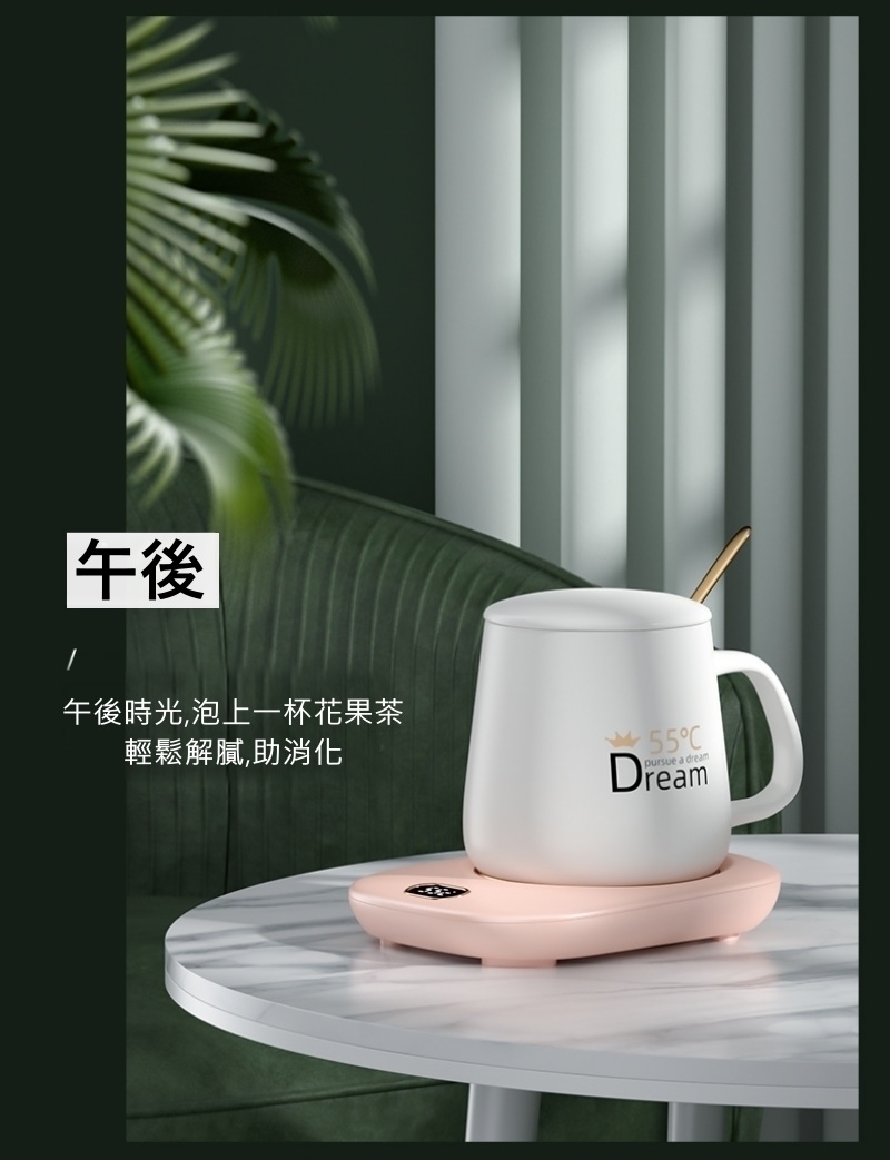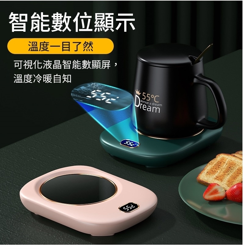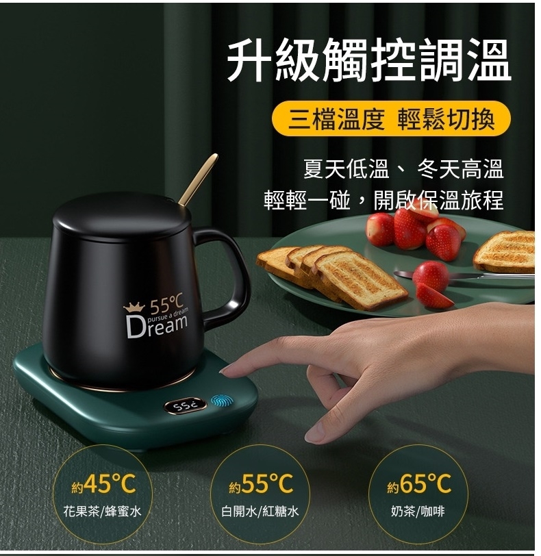 按鍵第四下則關閉加熱 將杯墊插上USB,杯墊顯示"OF"(請使用5V/2A的充電器,若不足會造成無法切換溫度的狀況) 輕觸溫度開關可依序切換45℃/55℃/65℃