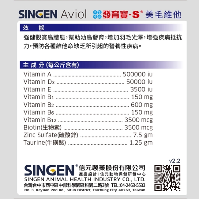 SINGEN 信元發育寶 觀賞鳥用美毛配方-60g/罐 鳥類保健 觀賞鳥保健食品
