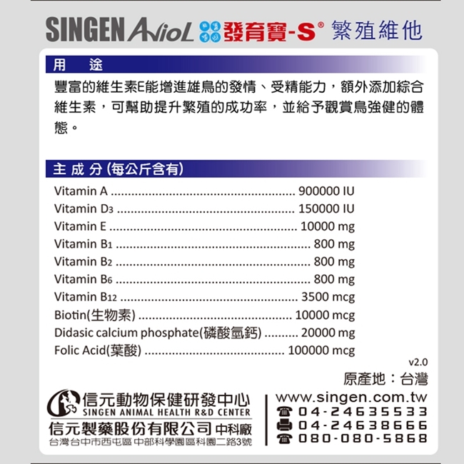 SINGEN 信元發育寶 觀賞鳥用繁殖配方-60g/罐 鳥類保健 觀賞鳥保健食品