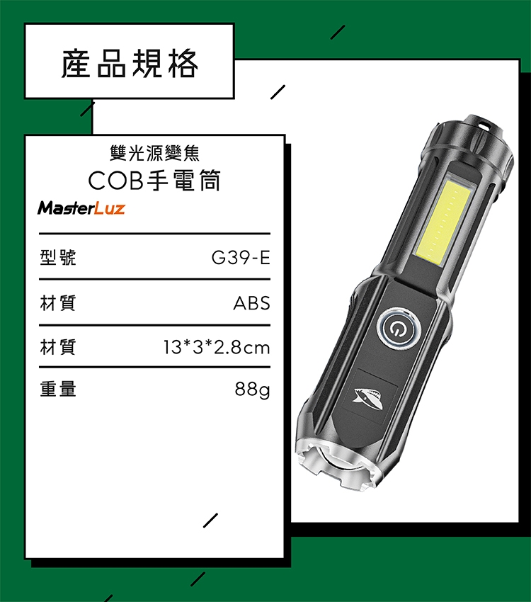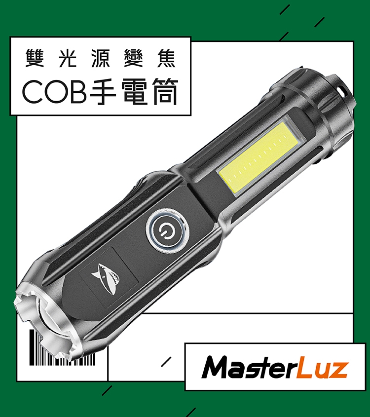 MasterLuz G39-E雙光源變焦COB手電筒(1入)