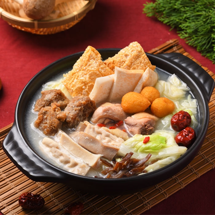 ◆成分:水、雞腿丁、大白菜、豬肚-豬肉原產地:台灣、豚骨高湯醬【豬肉原產地:台灣;乳化豬汁(豬骨濃縮汁、豬油、水、無鹽豬骨濃縮汁)、醬油、蒜油(大豆沙拉油、豬油、蒜頭、食鹽、水、維生素E(抗氧化劑))、大豆水解蛋白、豬油、砂糖、食鹽、豬頭骨濃縮汁(水、豬頭骨、豬皮、維生素E(抗氧化劑))、食用酒精、大豆沙拉油、豬骨泥(豬骨、水)、雞肉萃取液、昆布抽出物(昆布抽出液、水解蛋白、調味料(胺基酸等)、糊精、砂糖、玉米糖膠)、蒜泥、豆瓣醬(台產紅辣椒、非基因改造黃豆、水、蠶豆、食鹽、蔗糖液糖、芝麻油、大豆油、麵粉、調味劑、玉米糖膠、天然香辛料(八角粉))、薑泥、白胡椒粉、昆布粉(昆布粉、葡萄糖、食鹽)、油性辣椒紅(芥花油、紅椒色素)、排骨酥【豬龍骨切(豬肉原產地:台灣)、樹薯澱粉、水、味鮮(L-麩酸鈉、琥珀酸二鈉、食鹽、、砂糖、鹽、碳酸氫鈉、木瓜酵素﹝碳酸氫鈉、木瓜酵素AFR(麥芽糊精、木瓜酵素、偏亞硫酸氫鈉)、食鹽﹞、白胡椒粉(白胡椒、麥芽糊精)、五香粉(小茴、肉桂、陳皮、八角、胡荽子、甘草、丁香、當歸、香芹子、川芎、山奈)、香蒜粉(蒜粉、麥芽糊精)】、鵪鶉蛋、凍豆腐【水、黃豆(非基因改造)、硫酸鈣】、杏鮑菇、木耳、豆皮【基因改造黃豆、大豆油】、白胡椒、紅棗、鹽、枸杞