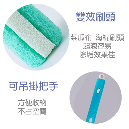 ◆ 菜瓜布+海綿刷頭,起泡容易,除垢效果優