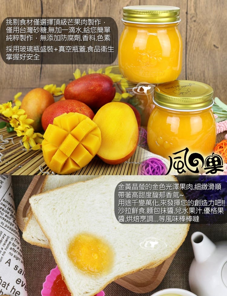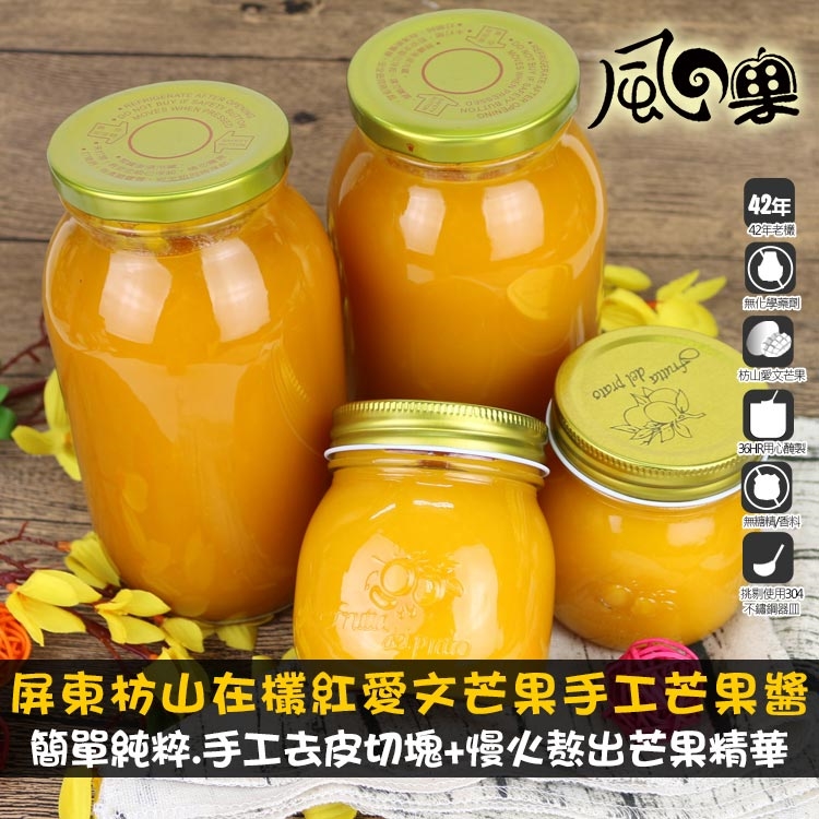 【風之果】屏東枋山在欉紅愛文芒果手工芒果醬小圓瓶300MLx6瓶