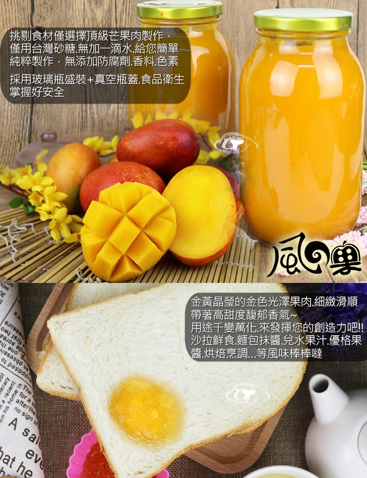 【風之果】屏東枋山在欉紅愛文芒果手工芒果醬1000MLx6瓶