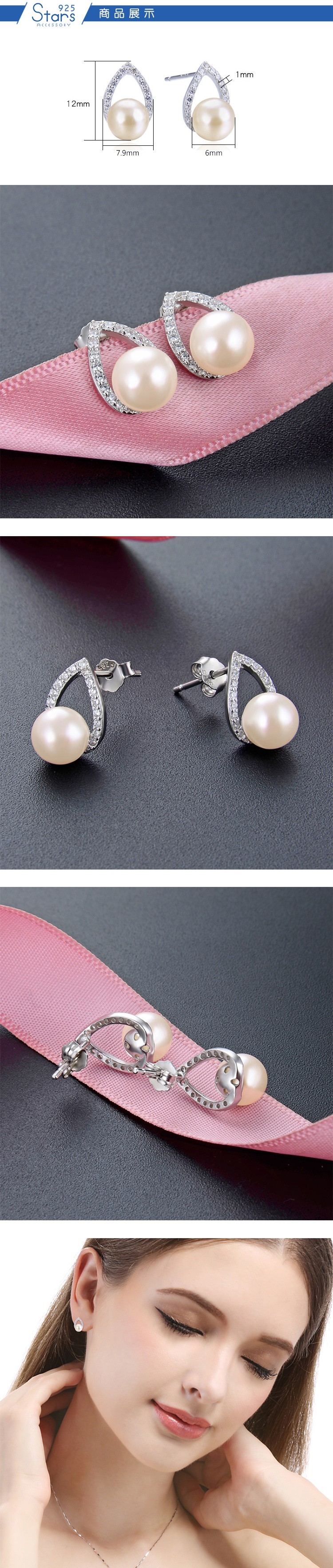 【925 STARS】純銀925微鑲美鑽圓潤貝珠水滴造型耳環 純銀耳環 造型耳環 珍珠耳環 情人節禮物
