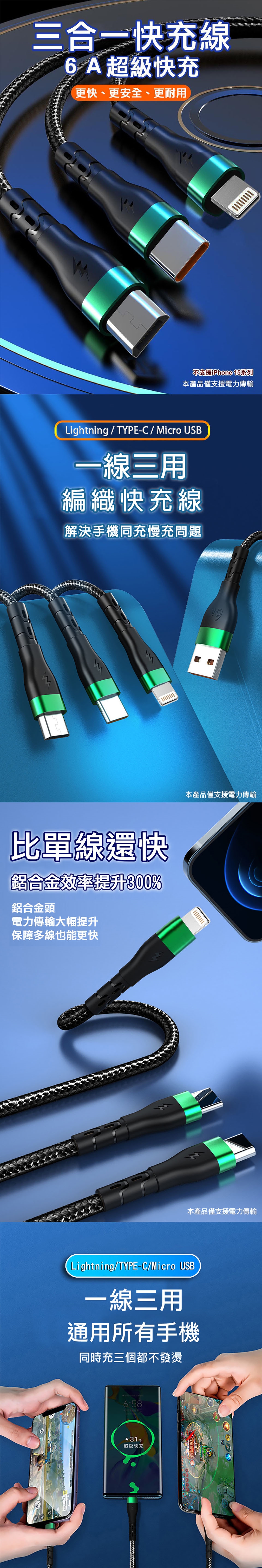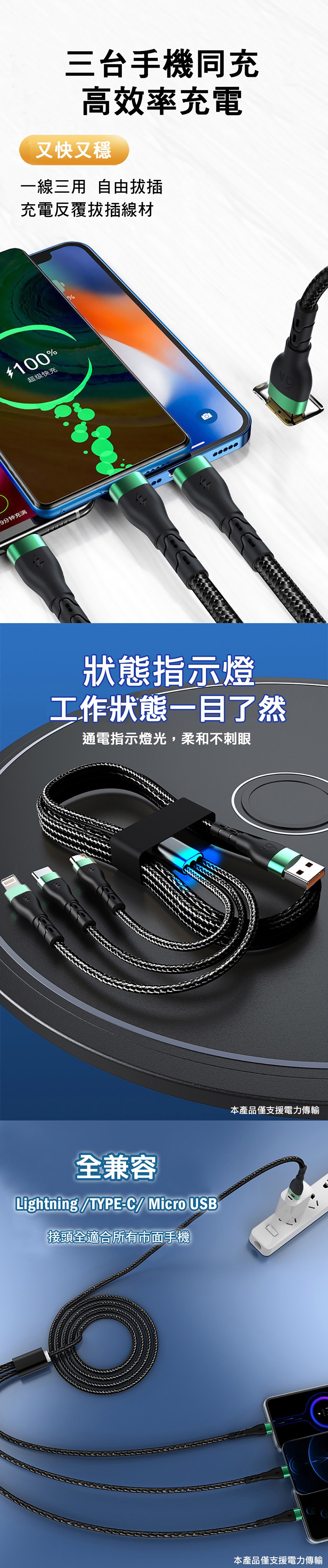 .全兼容,Lightning /TYPE-C/ Micro USB,接頭全適合所有市面手機。