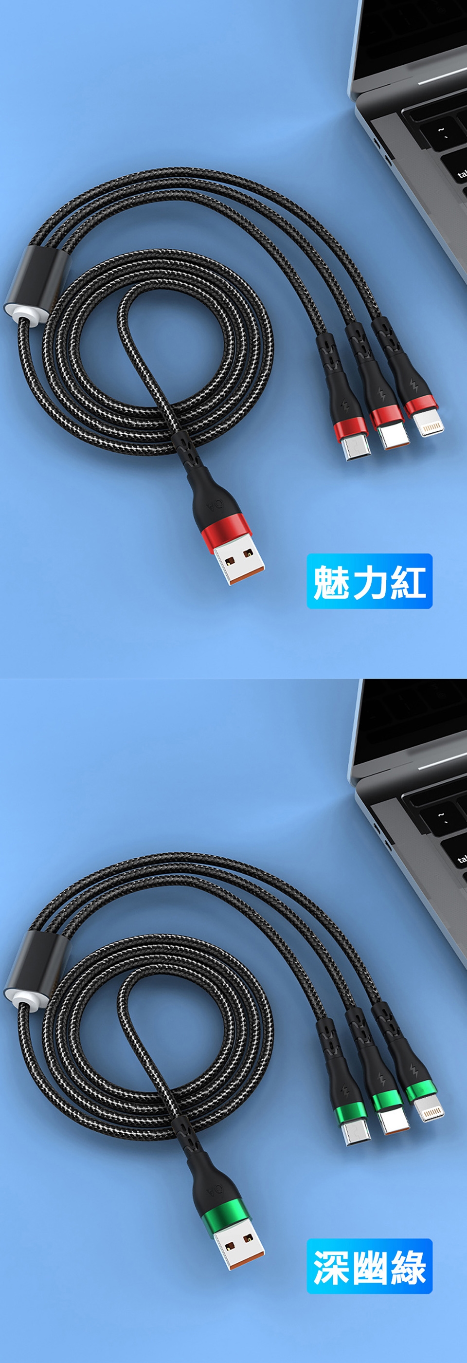 .一線三用,編織快充數據線解決手機同時慢充問題。