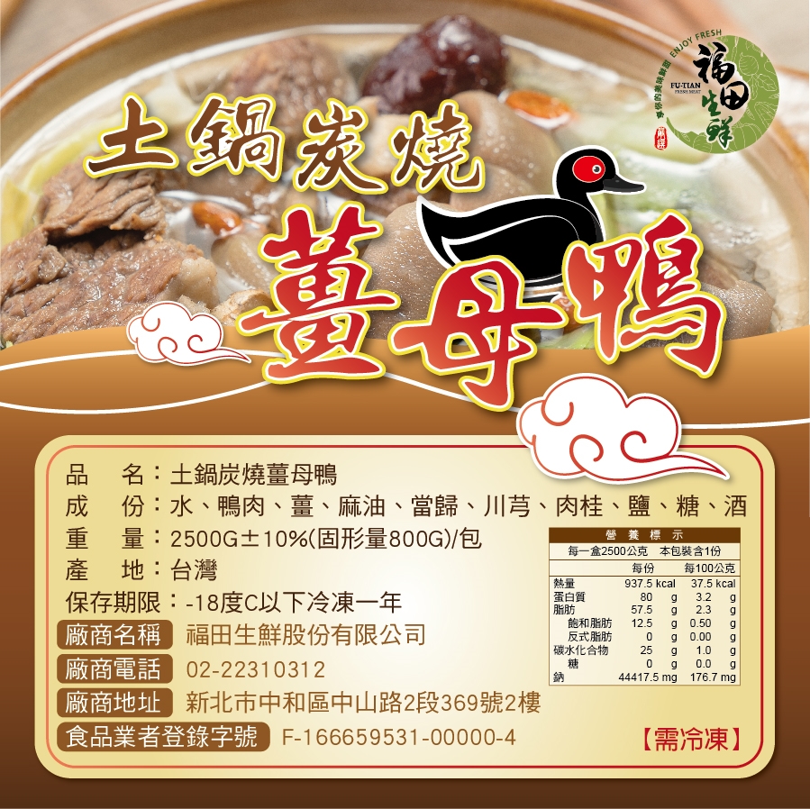 土鍋炭燒薑母鴨(2500G±10%(固形量800G)/包)*2包(不開放體驗)