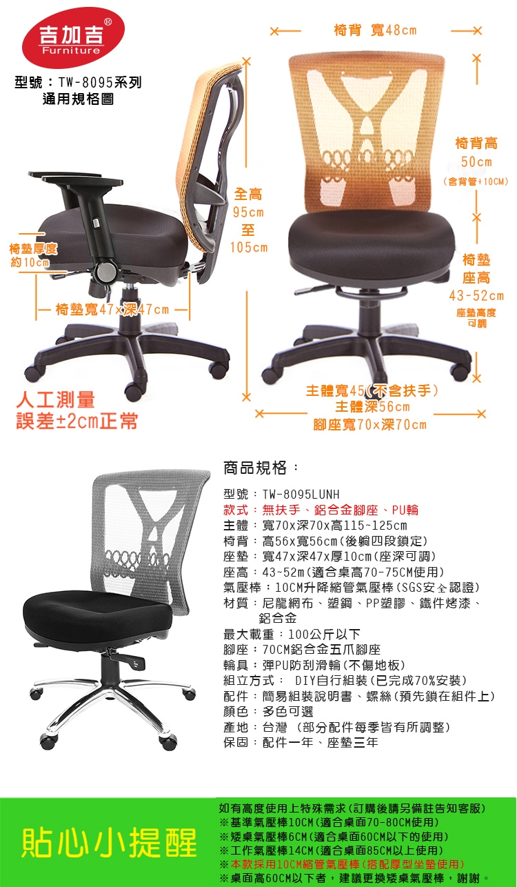 ※本款TW-8095電腦椅,提供多種款式可選,可以依據需求購買