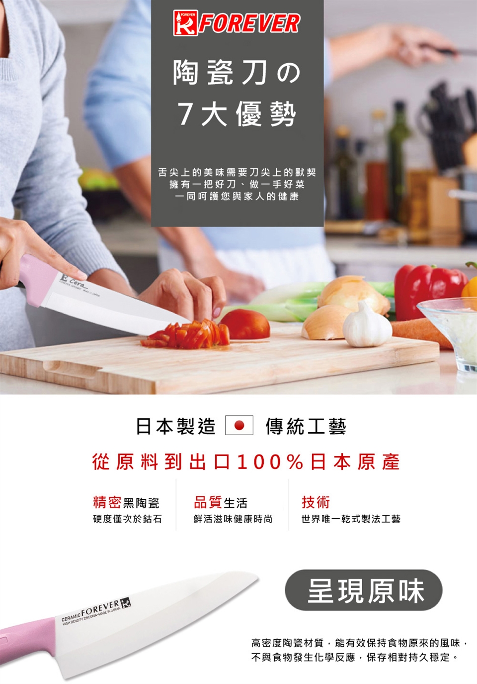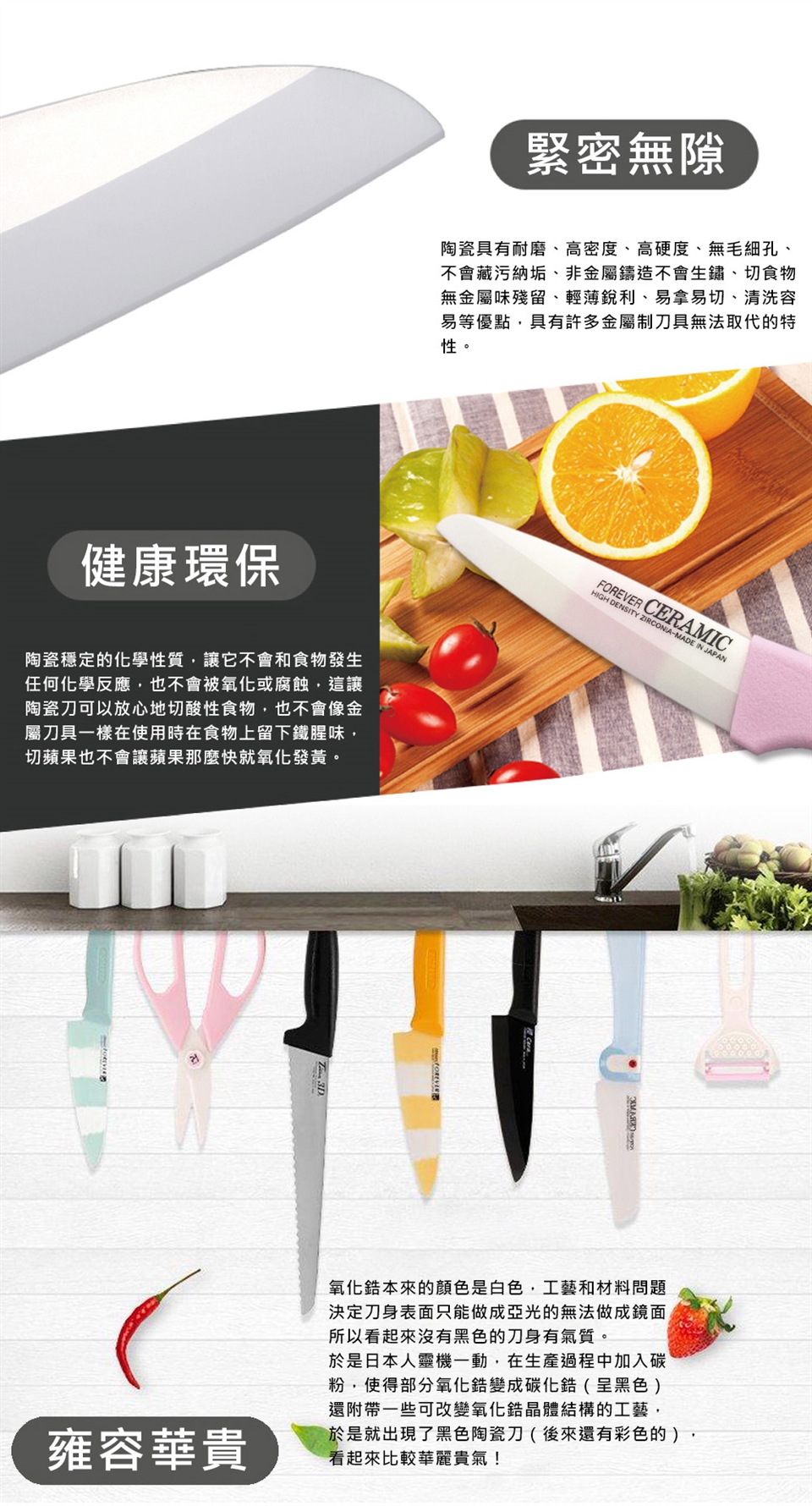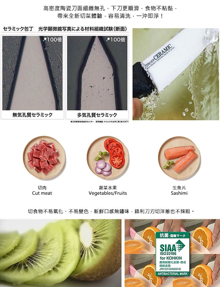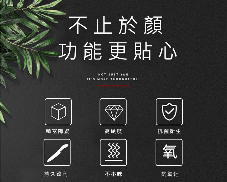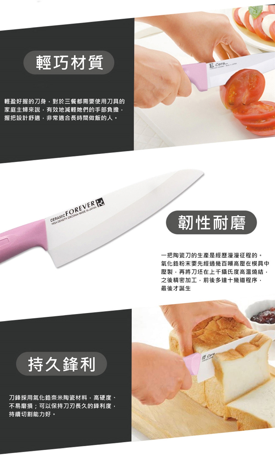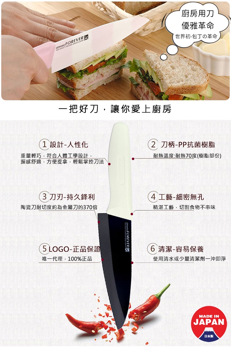 主要材質:刀刃(超高精密滑性陶瓷);握把(耐熱抗菌PP樹脂)
