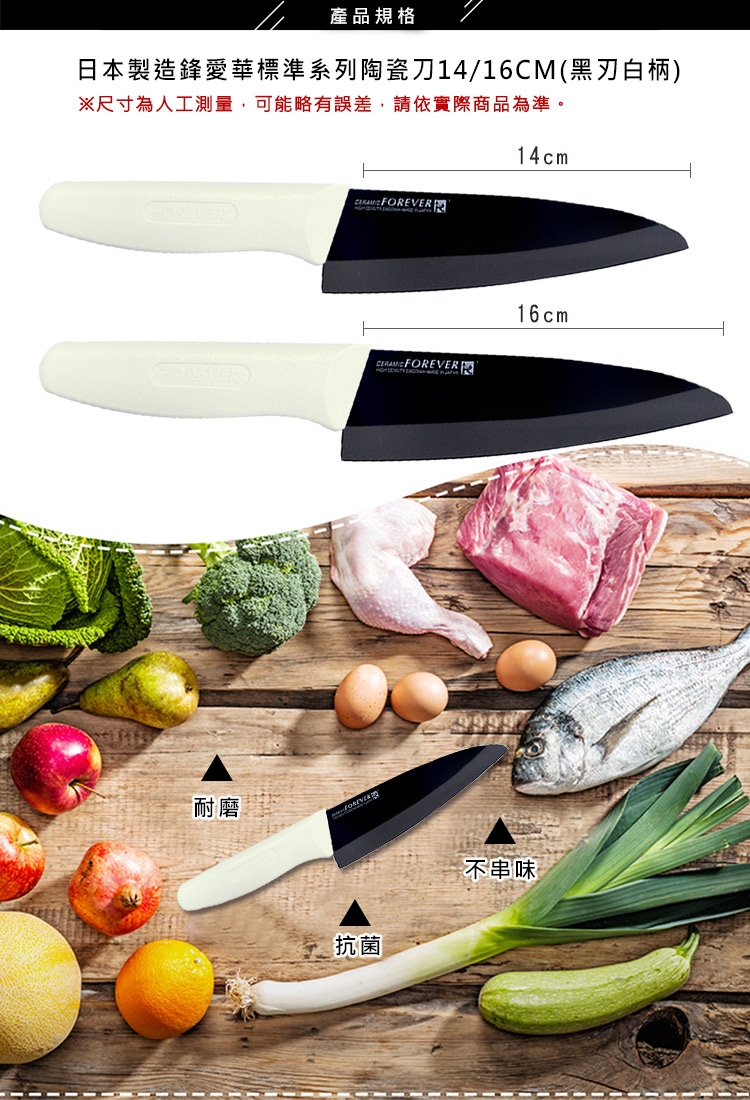 商品名稱:日本製造鋒愛華標準系列陶瓷刀14CM(黑刃白柄)
