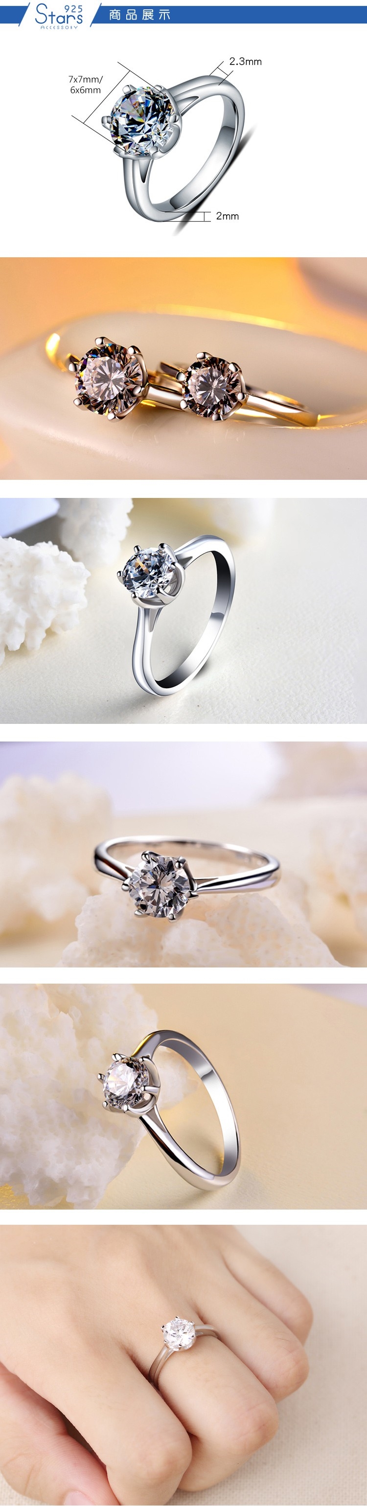 【925 STARS】純銀925美鑽鋯石1.5克拉立體六爪戒台單鑽戒指 純銀戒指 造型戒指 定情戒指 情人節禮物