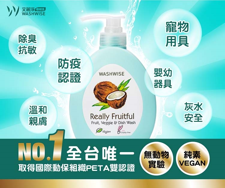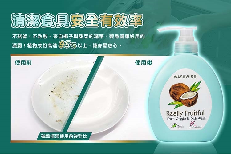 品名:【Washwise 聰明洗】果然有酵蔬果碗盤清潔露 (500ml)