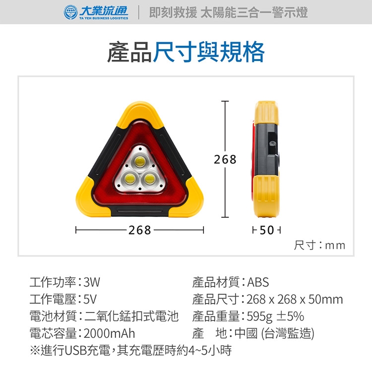 太陽能 三合一警示燈-附USB充電線