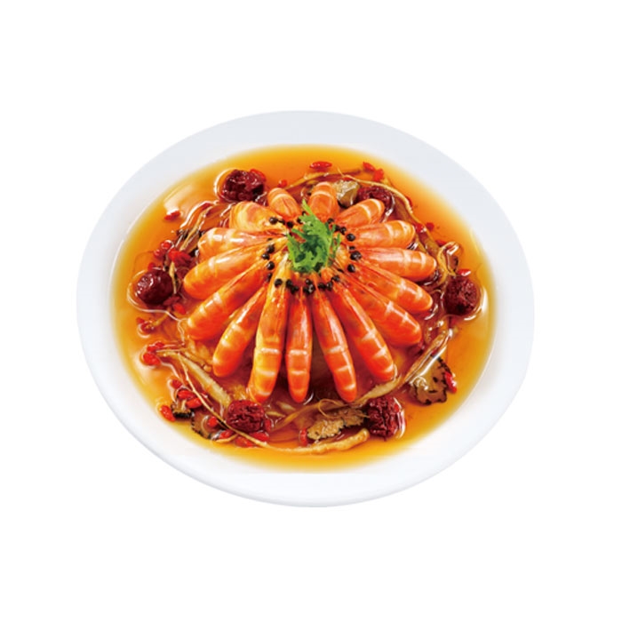 ★精選肥美的白蝦用紅棗、枸杞..等中藥材煮出甜味,再加入紹興酒入味,吃