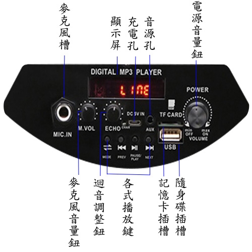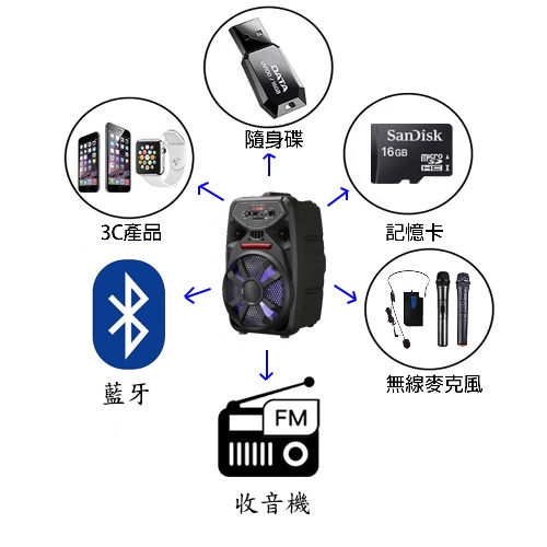 3.支援卡拉OK歡唱,具ECHO迴音功能,七彩LED變幻燈,增加歡樂氣氛。