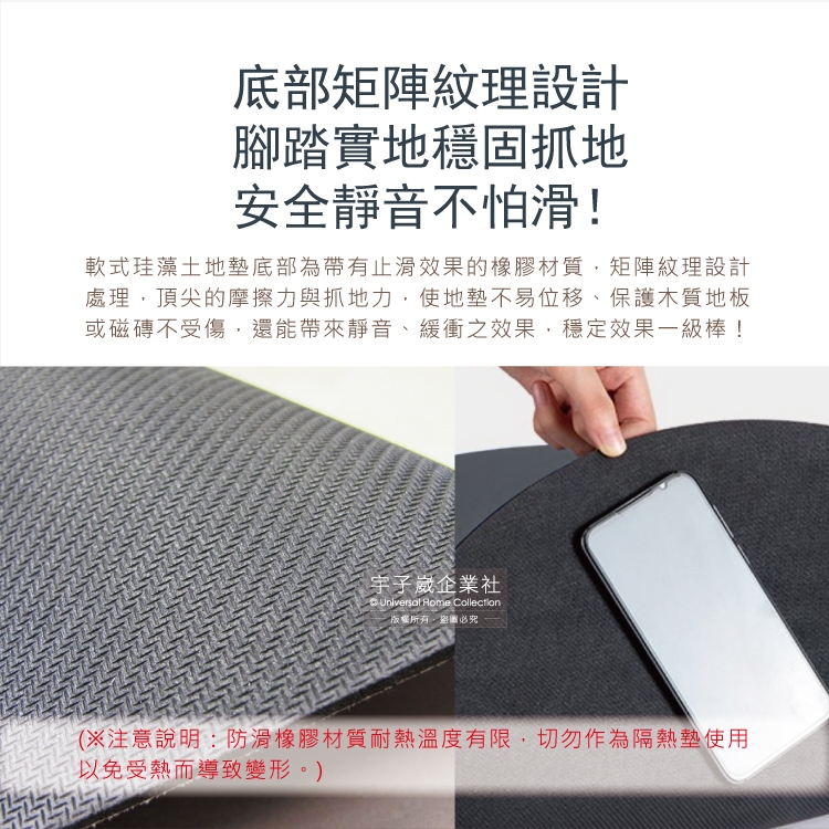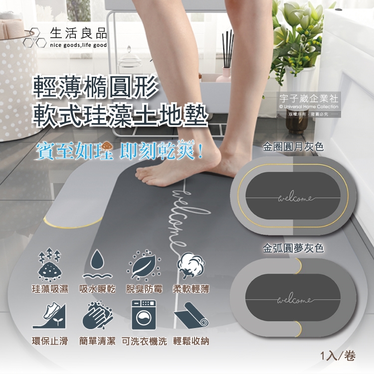 ●品名:廚房浴室防滑瞬間吸水輕薄橢圓形軟式珪藻土地墊