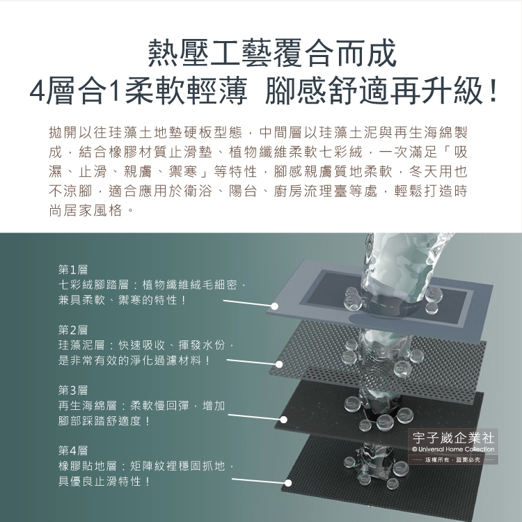 ●材質:七彩絨(植物合成纖維)、珪藻泥、再生海綿、橡膠