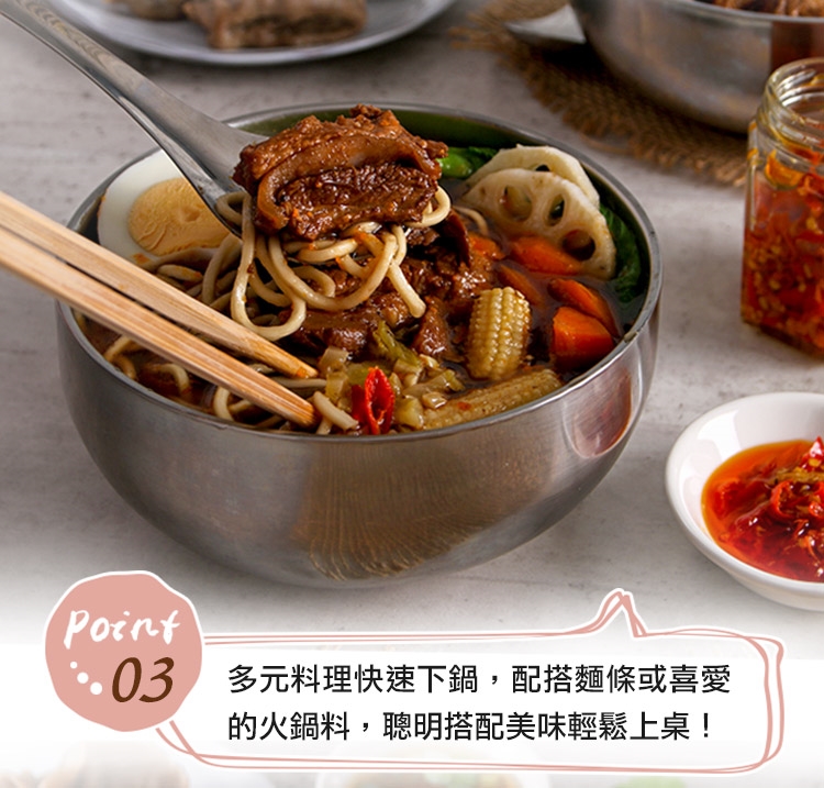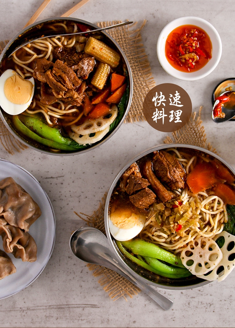 退冰解凍後,去除包裝袋並倒入容器中,依個人喜好斟酌加水及調味料煮沸3分鐘即可食用。